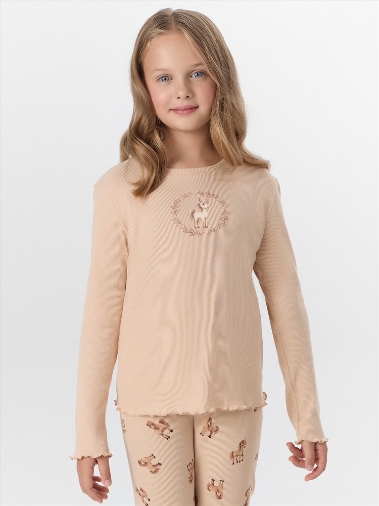 Комплект для девочек состоит из джемпера и брюк.
