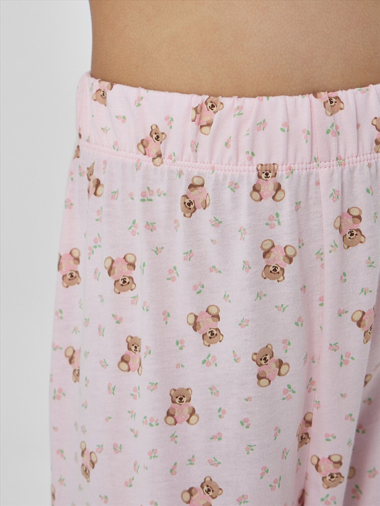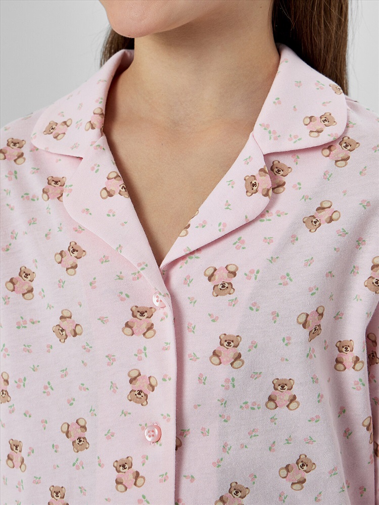 Подарите своему ребенку комфорт и очарование с домашним комплектом, созданным для приятного отдыха и активных домашних игр. В комплект входят рубашка и брюки, выполненные из мягкой хлопковой кулирки — натурального материала, который нежно заботится о коже и обеспечивает отличную воздухопроницаемость. Рубашка прямого силуэта с отложным воротником выглядит аккуратно и стильно. Спущенное плечо и длинные рукава добавляют свободы движений, а центральная застежка на пуговицы делает модель удобной и практичной. Брюки слегка расширены к низу, что придает образу легкость и современность. Эластичный пояс мягко фиксирует посадку, не сдавливая животик, а низ брюк аккуратно застрочен швом в подгибку. Этот комплект — идеальный выбор для дома: он сочетает в себе комфорт, качество и милый стиль. Подходит для отдыха, игр и уютных вечеров.