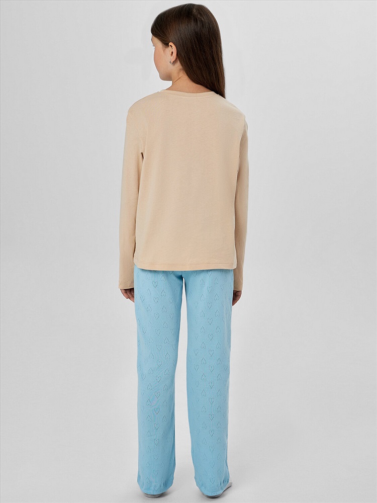 Комплект домашней одежды для девочек с мотивирующей надписью «Ты великолепна» создан для комфортного отдыха и спокойного сна. Пижама состоит из лонгслива и брюк, выполненных из натурального хлопка, нежного к коже и гипоаллергенного.