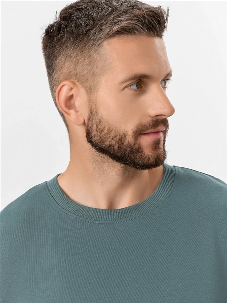 Нижний срез футболки и рукавов обработан швом вподгибку.