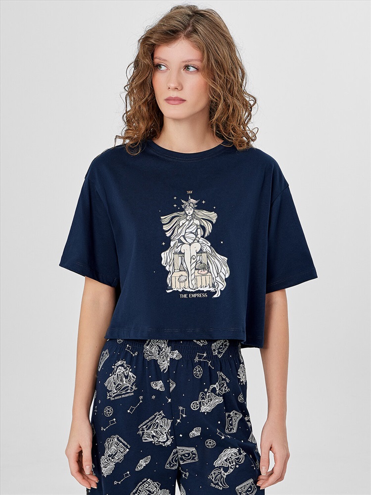 Очаровательная пижама женская с бриджами и укороченной футболкой — это идеальный комплект для комфортного отдыха и сна. Модель выполнена из хлопка, который обеспечивает мягкость, воздухопроницаемость и заботу о чувствительной коже. Укороченная футболка свободного кроя и бриджи с эластичным поясом дарят полную свободу движений, а нежные швы предотвращают натирание.