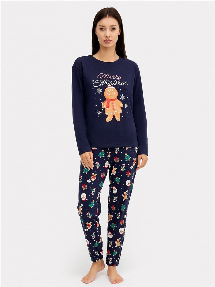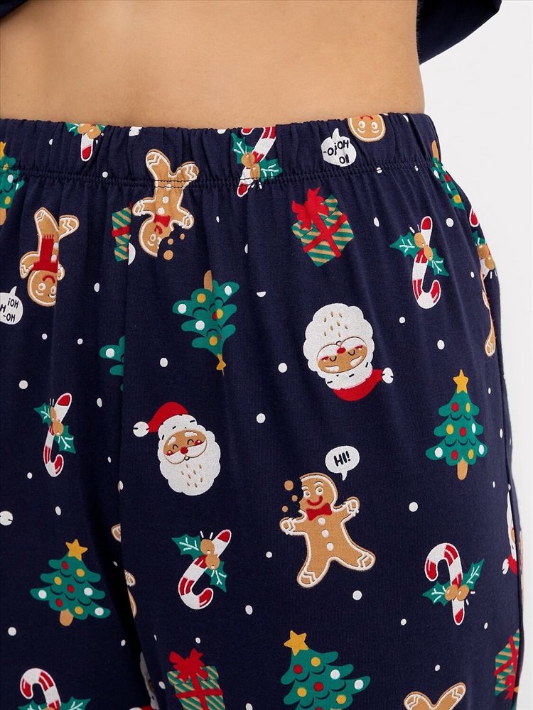 Горловина круглой формы с притачной обтачкой из основного полотна. Рукава длинные втачные. Перед и спинка цельнокроеные. Низ джемпера и рукавов обработан швом в подгибку. Брюки длинные, немного заужены к низу. Пояс цельнокроенный с эластичной тесьмой внутри. Низ брюк застрочен с эластичной тесьмой внутри.