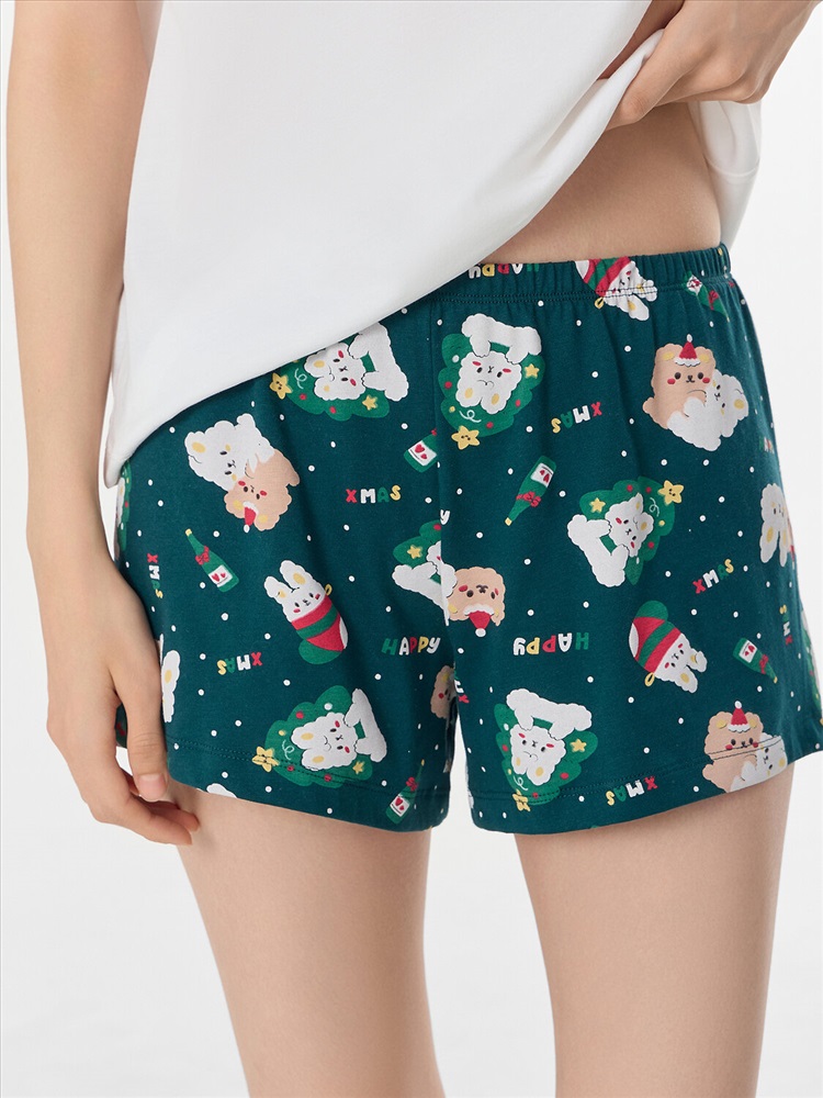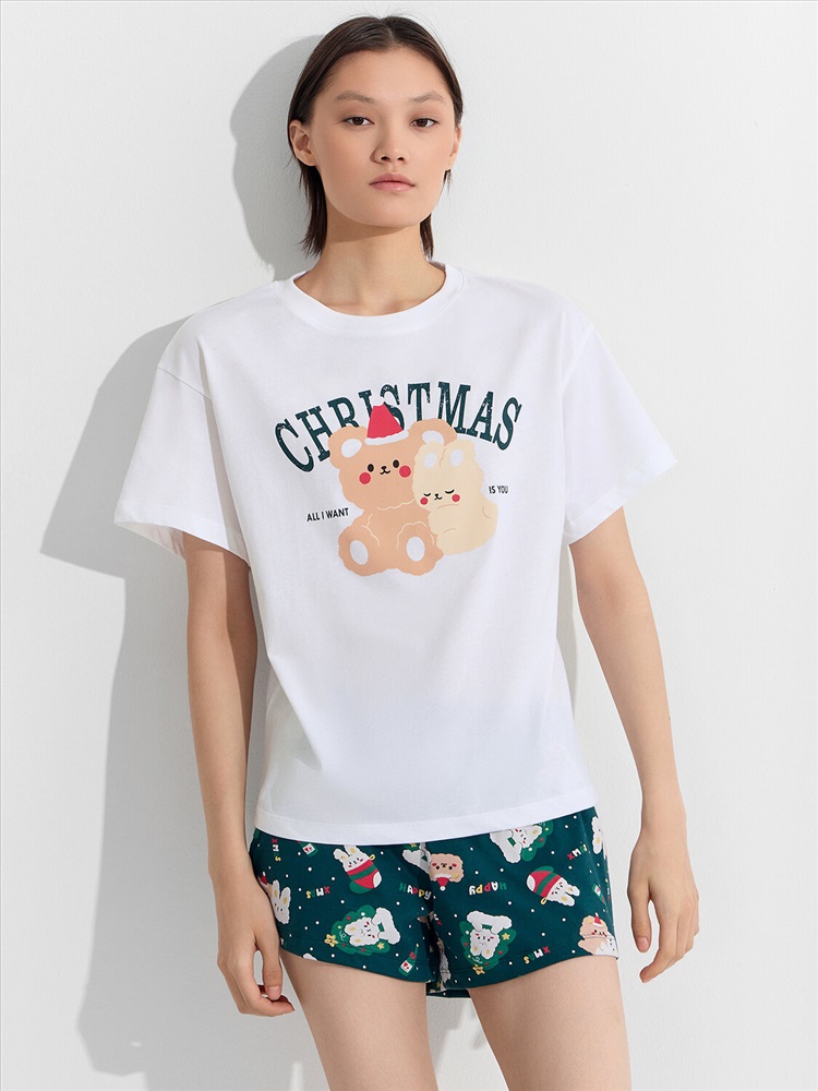 Женская пижама с новогодним принтом создает особенное праздничное настроение. Погрузитесь в атмосферу уюта и праздника с этим очаровательным женским комплектом, состоящим из футболки и шорт. Пижама станет идеальным выбором для комфортного сна и расслабленного отдыха.
