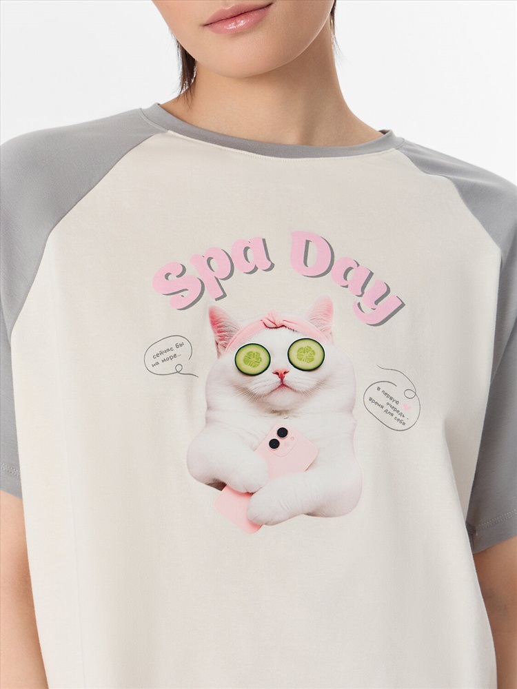 Эта пжама — ваш пропуск в мир абсолютного расслабления. Набор, состоящий из свободной футболки и удобных шорт, создан для тех моментов, когда вы заслуживаете настоящего отдыха. Принт с котом сразу задаёт беззаботное настроение, напоминая, что иногда самое продуктивное состояние — это состояние полного покоя.