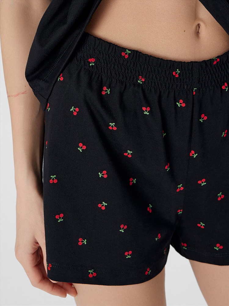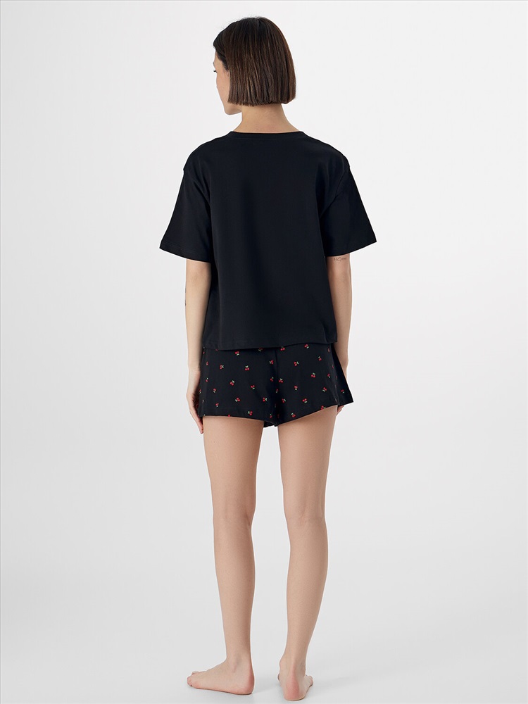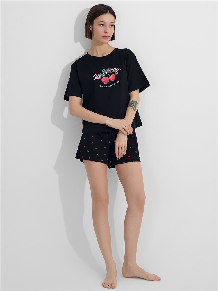 Женская пижама, состоящая из футболки и шорт, выполнена из натурального хлопка — дышащего, мягкого и приятного к телу материала, идеально подходящего для комфортного сна и отдыха. Натуральная ткань обеспечивает хорошую воздухопроницаемость и не вызывает раздражения, что особенно важно для чувствительной кожи. Футболка свободного силуэта с круглой горловиной и слегка спущенной линией плеча создает расслабленный и уютный образ. Свободные рукава не ограничивают движения, а аккуратная обработка низа рукавов и самого изделия швом вподгибку подчеркивает качество пошива и делает модель визуально завершенной. Шорты короткие, свободного кроя, с эластичным поясом, который обеспечивает комфортную посадку без давления. Низ шорт также обработан швом вподгибку, что придает изделию аккуратный вид. Пижама идеально подойдет для домашнего отдыха, сна или уютных вечеров, сочетая в себе легкость, комфорт и лаконичный стиль.
