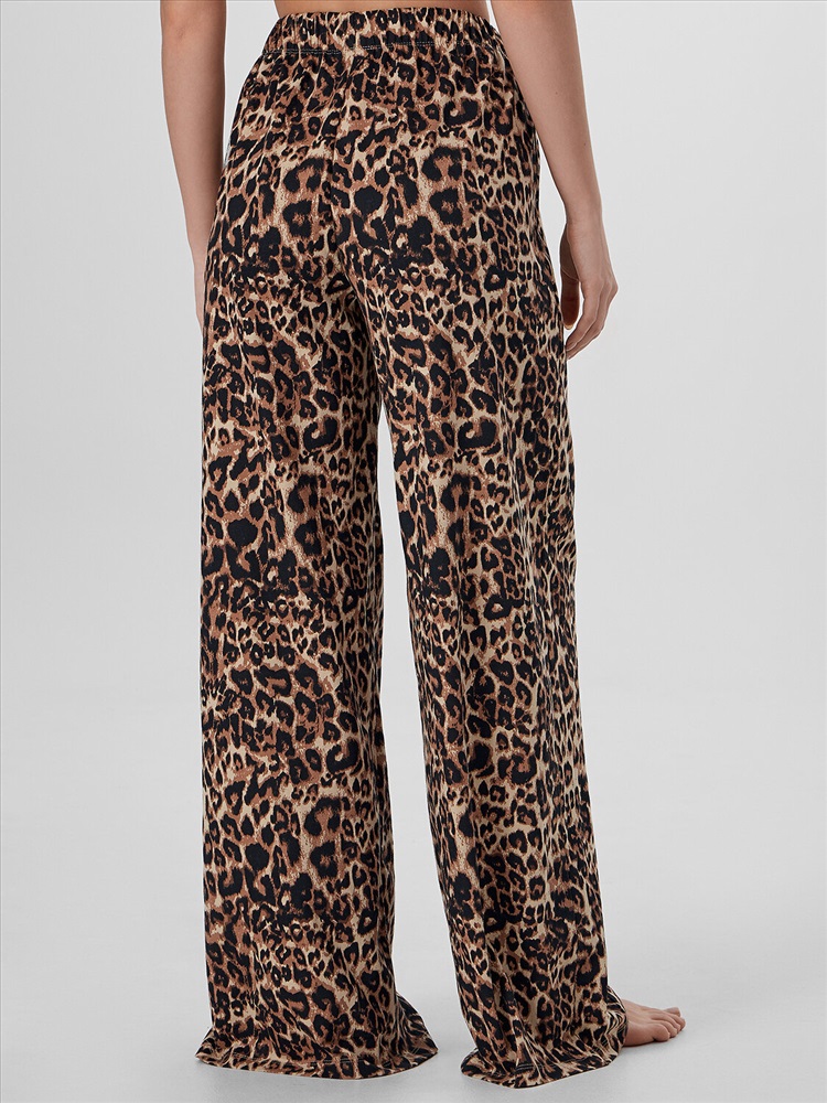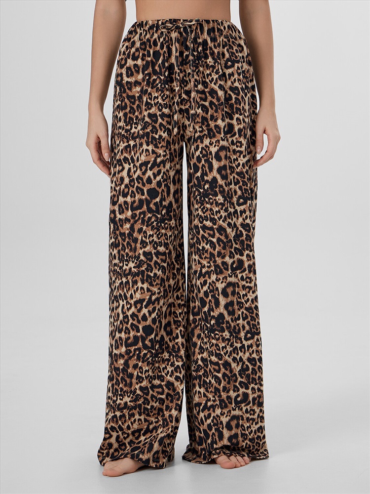 Брюки с эластичной резинкой мягко сидят по талии, не сковывая движений. Оригинальный пояс с протянутой декоративной тесьмой добавляет модели изюминку, а аккуратно обработанные низы сохраняют форму изделия.