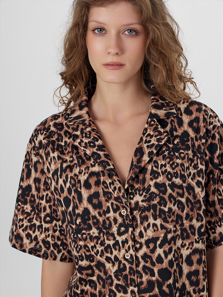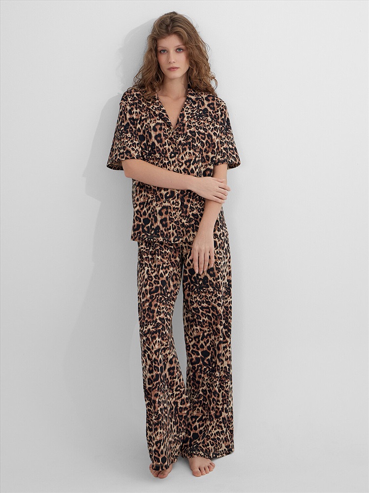 Женская домашняя пижама из рубашки и брюк создана для тех, кто ценит уют и комфорт. Натуральный хлопок обеспечивает нежность и воздухопроницаемость, даря коже приятные ощущения и полную свободу движений. Рубашка свободного кроя с отложным воротником и короткими рукавами выглядит стильно и элегантно. Классическая застежка на пуговицы удобна в использовании, а аккуратная обработка всех краев обеспечивает долговечность носки.