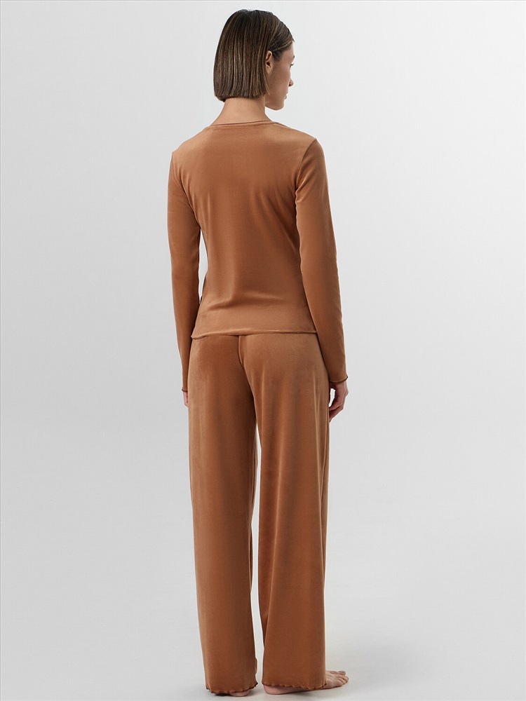 Уютная женская пижама, которая подарит вам комфорт и стиль в каждом моменте отдыха. Этот комплект включает джемпер полуприлегающего силуэта с круглым вырезом горловины и длинными рукавами, а также брюки свободного силуэта со средней посадкой. Джемпер нежно облегает тело, создавая изящный силуэт, а брюки с эластичным поясом на кулиске обеспечивают удобную посадку и свободу движений. Карманы в боковых швах с подкладкой из кулирки добавляют практичности и удобства. Велюр – роскошный и мягкий материал, который приятно ощущается на коже и сохраняет тепло. Эта пижама идеально подходит для домашнего отдыха, вечернего чаепития или утреннего кофе. В ней вы будете чувствовать себя уютно и стильно в любой обстановке!
