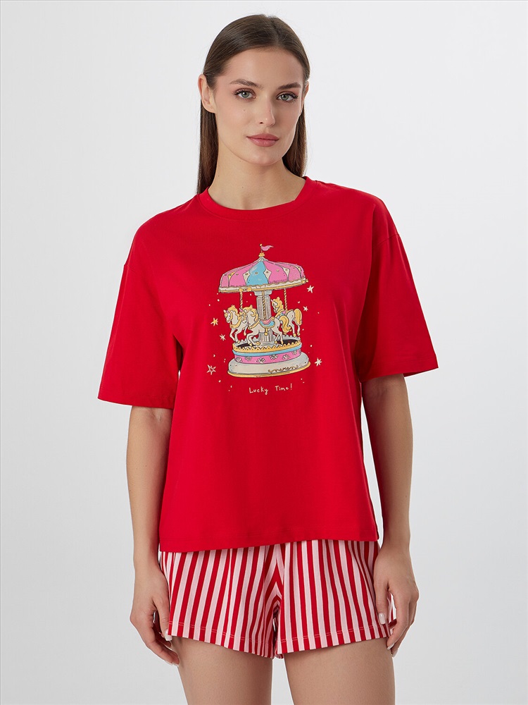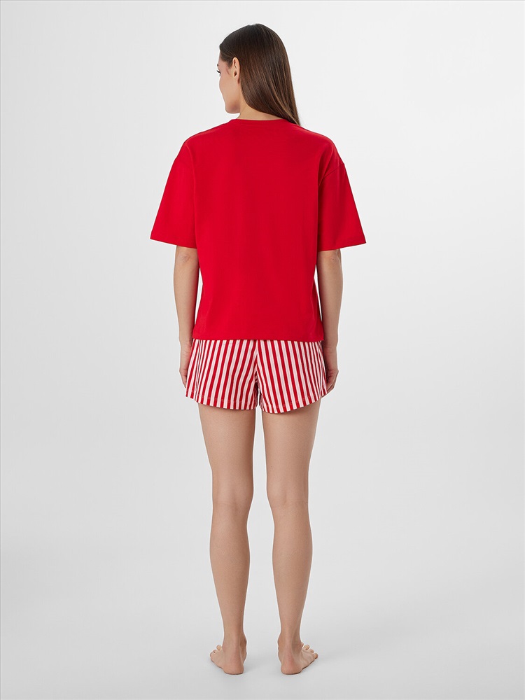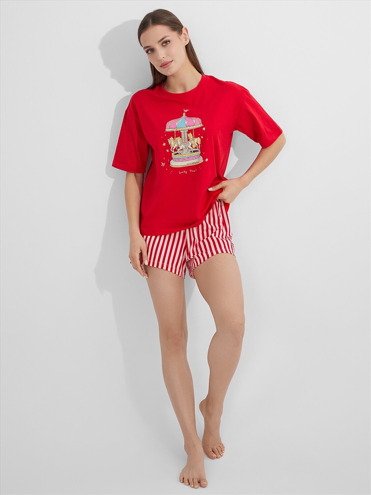 Женский домашний комплект — это гармоничное сочетание удобства и расслабленного стиля! Футболка свободного силуэта с круглой горловиной и слегка спущенной линией плеча создает уютный и непринужденный образ. Свободные короткие рукава и обработка нижних краев швом вподгибку придают аккуратность и обеспечивают комфорт. Шорты свободного кроя с эластичным поясом гарантируют удобную посадку и свободу движений. Нижний край шорт обработан швом вподгибку, что подчеркивает практичность и долговечность изделия. Пижама выполнена из мягкого и приятного материала, идеально подходящего для домашнего гардероба. Рекомендуем!