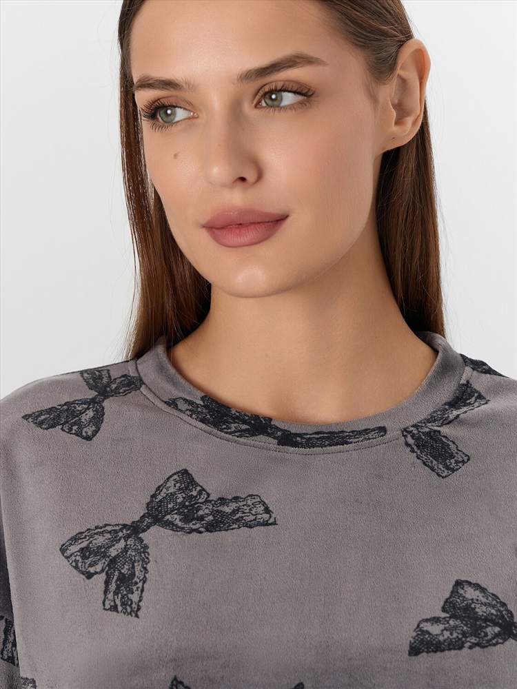 Серый велюровый комплект для женщин — ваш верный спутник для моментов полного расслабления и домашнего уюта. Набор состоит из джемпера прямого силуэта и свободных брюк, выполненных из мягкого велюра. Состав из полиэстера с добавлением эластана обеспечивает износостойкость, идеальное облегание и сохранение формы после многих стирок.