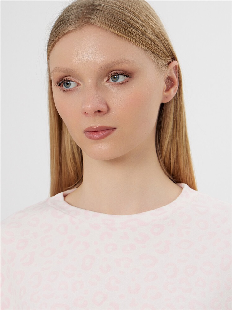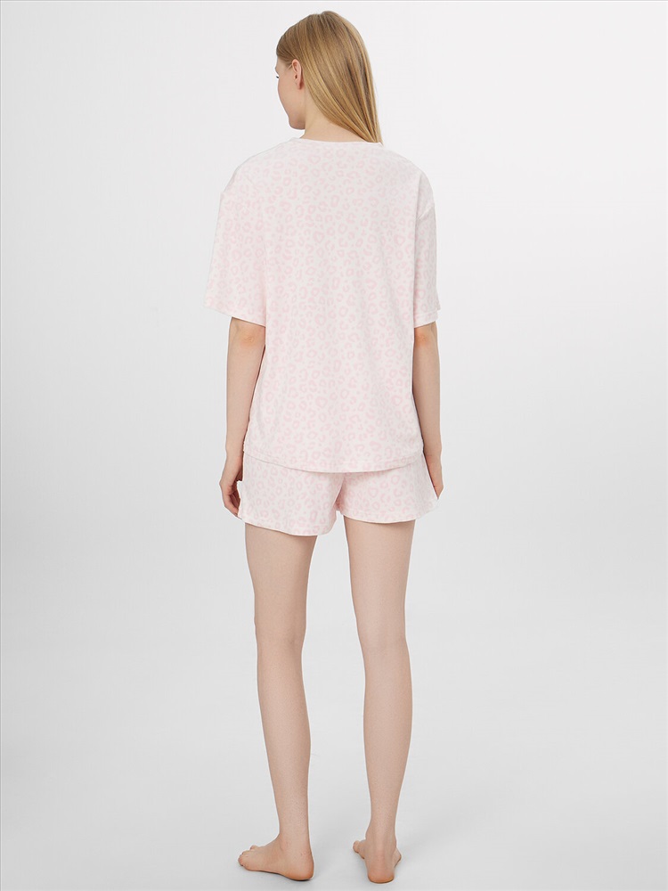 Женская пижама — это комплект для сладкого сна и отдыха в уютной обстановке. Он состоит из свободного короткого джемпера и таких же комфортных шорт. Мягкая круглая горловина и короткие рукава джемпера обработаны аккуратными швами, которые не раздражают кожу. Шорты с высокой посадкой и мягким широким поясом внутри удобно сидят на талии, не сползая. Все края изделий — на джемпере и шортах — имеют ровную и прочную обработку, которая обеспечивает опрятный вид даже после множества стирок.