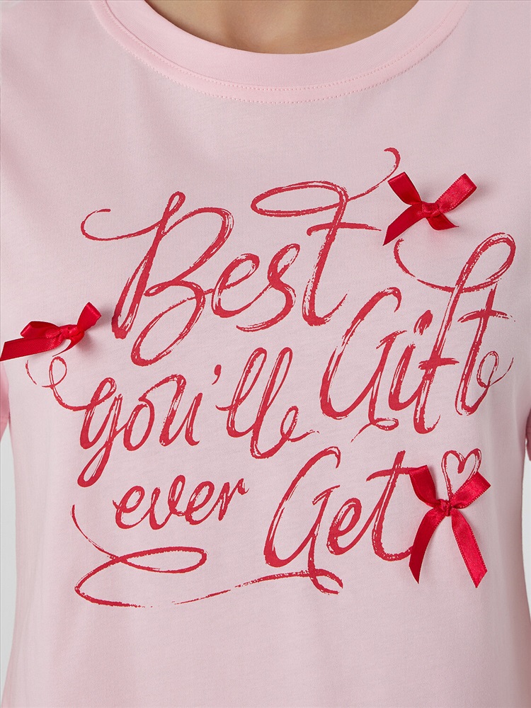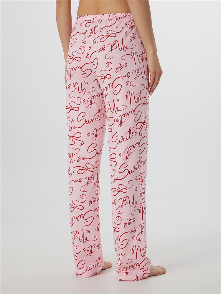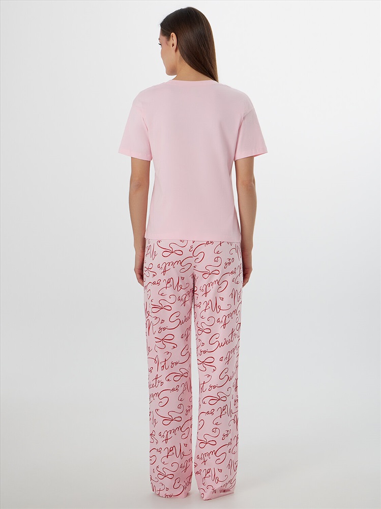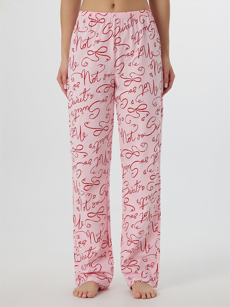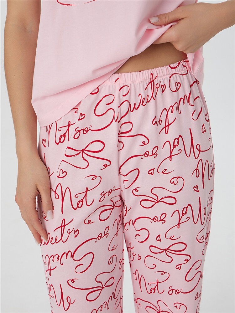 Женский комплект для сна и отдыха — это идеальное сочетание комфорта, качества и лаконичного стиля. Он состоит из футболки и брюк, выполненных из натурального хлопка, который обеспечивает мягкость, воздухопроницаемость и приятные ощущения на коже. Футболка прямого силуэта с круглой горловиной и короткими рукавами не сковывает движений, а аккуратная обработка нижнего среза швом вподгибку придает изделию аккуратный внешний вид. Брюки прямые, длинные, со средней посадкой и эластичным поясом, что делает их особенно удобными для сна и домашнего отдыха. Нижние срезы брюк также обработаны швом вподгибку, что повышает износостойкость изделия. Комплект отлично подойдет для уютных вечеров дома, обеспечивая максимальный комфорт и свободу движений.