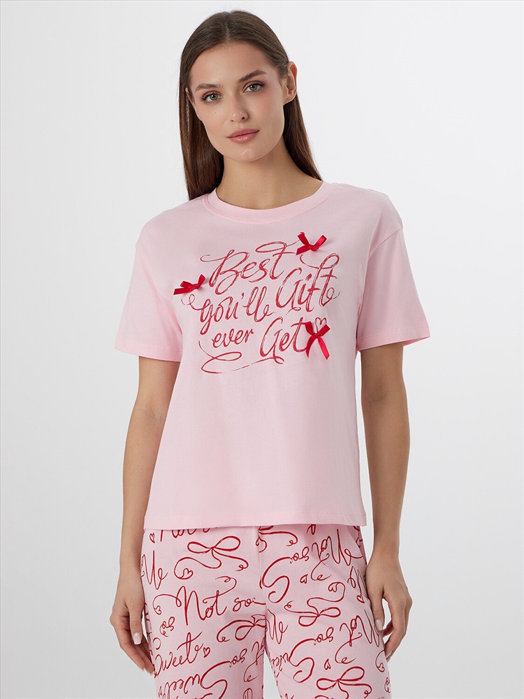 Производитель: MARK FORMELLE; Артикул поставщика: 592635; Состав: 100% хлопок ; Год: 2025; Страна: Беларусь; фактура материала: кулирное полотно; Тип карманов: без карманов; Уход за вещами: деликатная стирка при 30 градусах; Утеплитель: без утепления; Вид застежки: без застежки; Предмет: Костюмы; Пол: Женский; Тип рукава: короткие; Назначение: домашняя одежда; Покрой/ Силуэт: прямой; Сезонность СТАРАЯ: Всесезонное; Декоративные элементы: без элементов; Модель брюк: прямые; Российский размер: 48; Рост: 164-170; Обхват груди: 96; Обхват бедер: 102