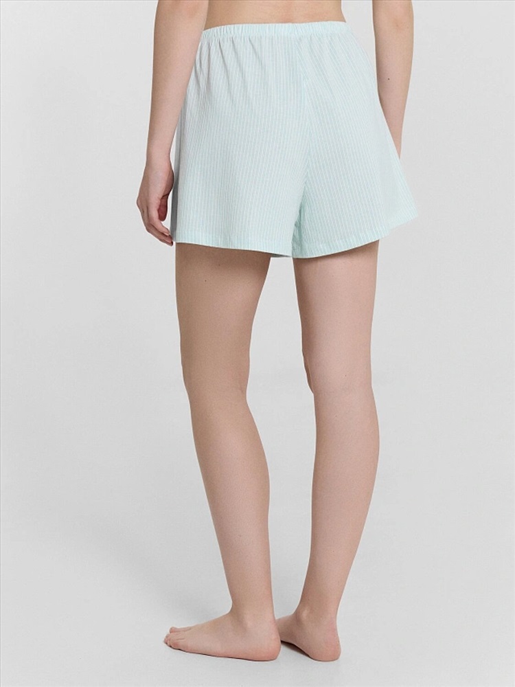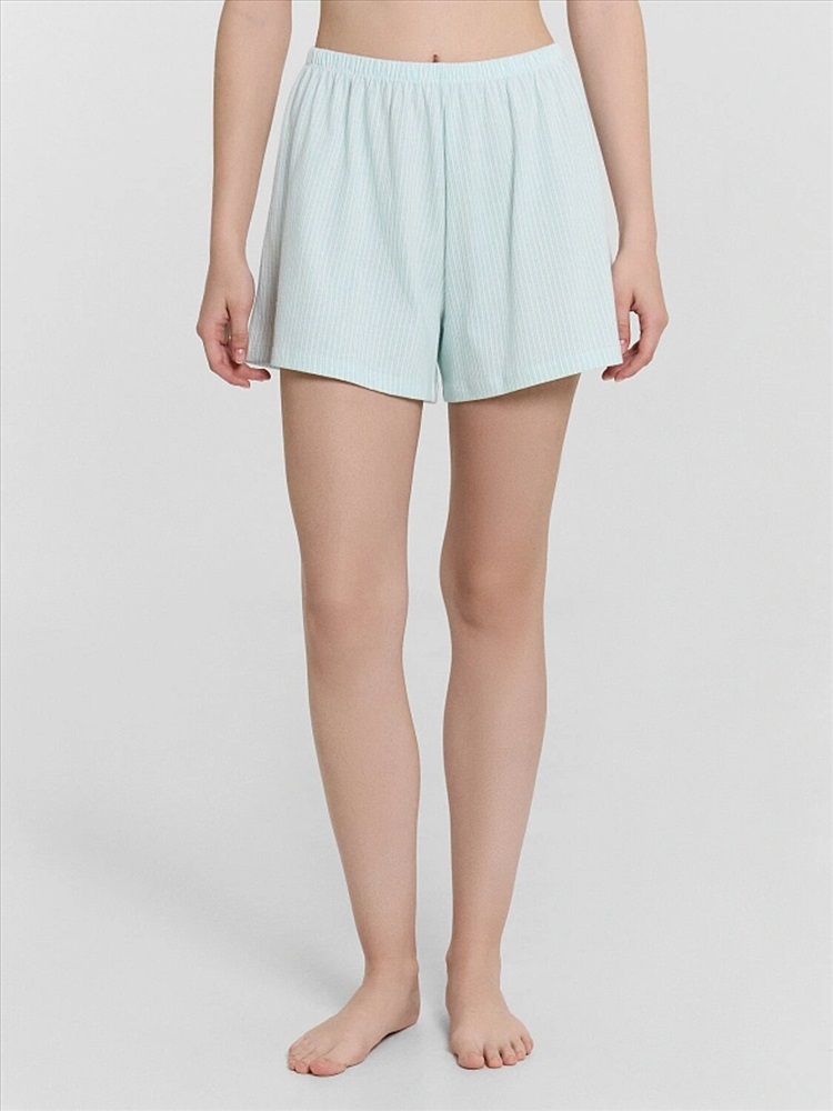 Шорты свободного силуэта, короткие. Пояс цельнокроеный, с втачной эластичной тесьмой 20RV. Низ шорт обработан вподгибку.