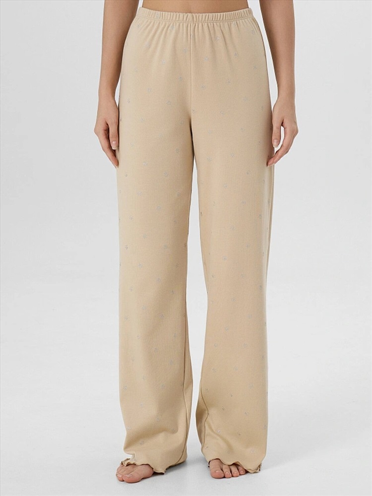 Брюки с широким поясом на мягкой резинке— воплощение домашнего уюта. Эластичная лента внутри пояса бережно фиксирует изделие, не оставляя следов на коже, а низ брючин тщательно прошит надежной строчкой, которая сохраняет идеальную форму.