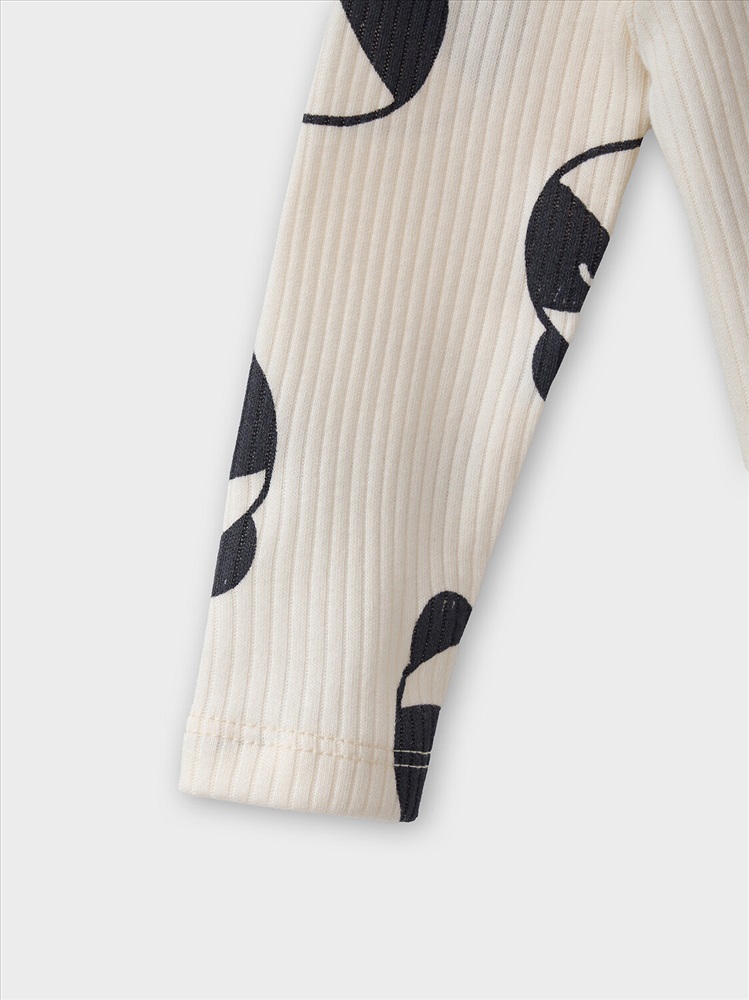 Рукава длинные, втачные, одношовные. Низ рукавов обработан на 2х игольной плоскошовной машине швом в подгибку. Нижние края изделия по середине фиксируются на книпперы 9 мм- 2 шт. Ползунки с открытыми ножками. Пояс цельнокроенный, с эл. тесьмой внутри (внутрення резина 30RV), ширина 30 мм. В пояс вставлена ХБ тесьма, ширина 10 мм. По низу изделия притачные манжеты из трикотажной рибаны 1*1 R-59, R11-049.01.230, 97% хлопок; 3% эластан, 230 гр, 165 см.