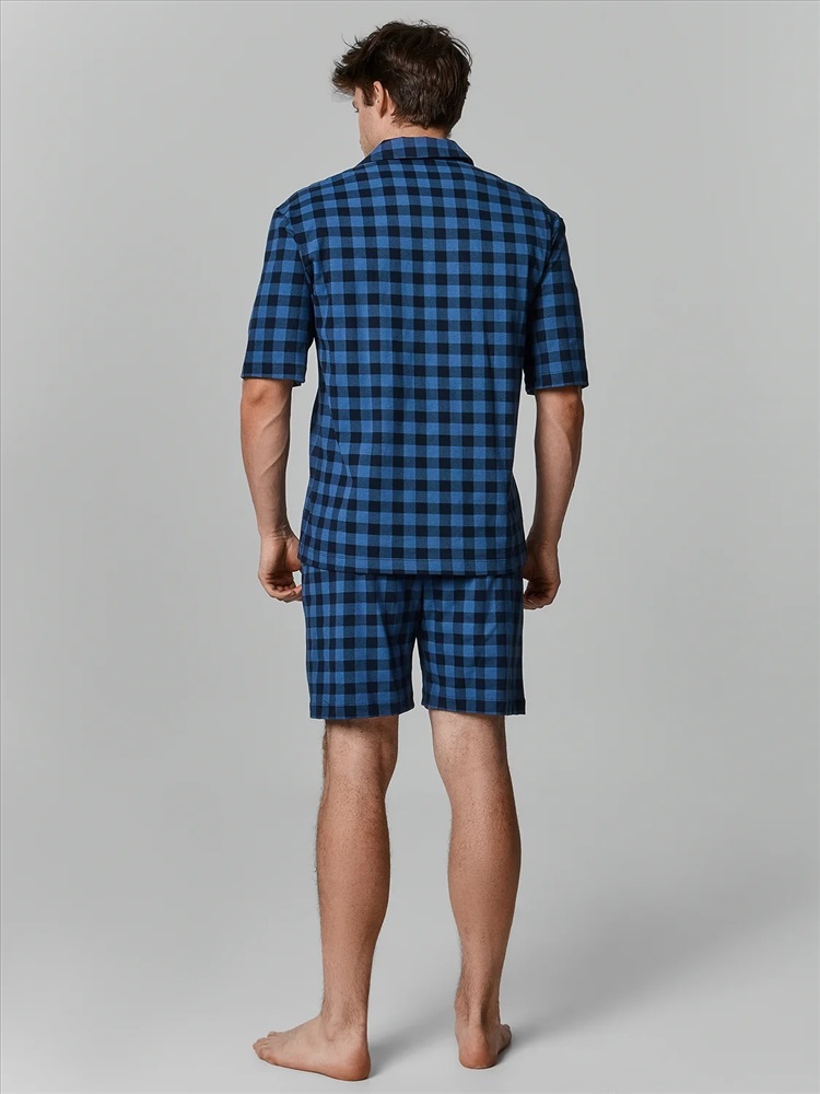 Комплект состоит из сорочки и шорт. Комплект из трикотажного кулирного полотна, 100 % хлопок, 180 гр /м2, 180см, SJ-001.01.180 . Сорочка прямого силуэта, свободная. Рукава втачные короткие, линия плеча слегка спущена. Горловина V-образной формы с отложным воротником. Низ изделия и низ рукавов застрочен швом в подгибку на двухигольной плоскошовной машине. Шорты прямые, свободные, с классической линией талии. Пояс цельнокроенный с эластичной тесьмой