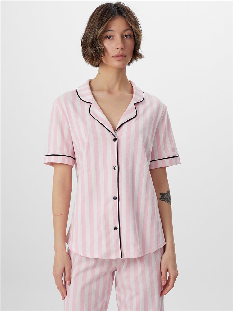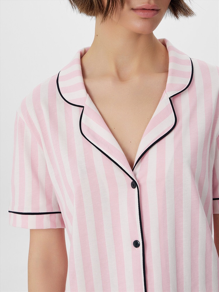 Комплект отлично подойдет для спокойного сна, утреннего кофе или неспешных домашних дел. Классическая полоска и нейтральная цветовая гамма делают его универсальным и практичным выбором для повседневной носки.