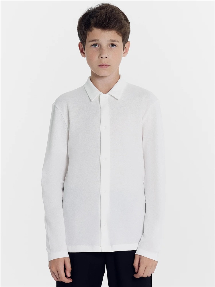 Производитель: MARK FORMELLE; Российский размер: 128; Рост: 122-128; Возраст: 8; Обхват груди: 64; Артикул поставщика: 123432/1; Состав: 100% хлопок ; Год: 2025; Страна: Беларусь; Особенности модели: нет; Уход за вещами: деликатная стирка при 30 градусах; Вырез горловины: круглый; Тип рукава: длинные; фактура материала: пике; Предмет: Рубашки; Пол: Мальчики; Сезонность: Всесезонное; Назначение: повседневная; Покрой: свободный; Декоративные элементы: без элементов Сорочка прямого силуэта с воротником. Рукава длинные, втачные. По переду обработана застежка на пуговицы и петли. Низ изделия и рукавов обработаны на 2-х игольной плоскошовной машине швом в подгибку.