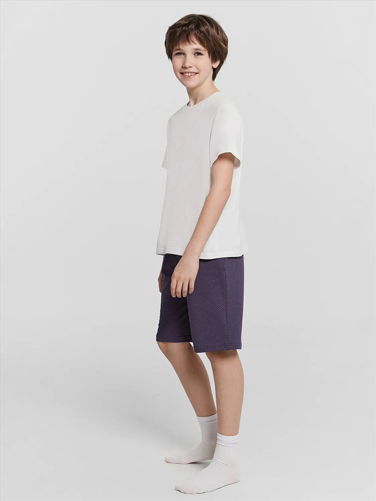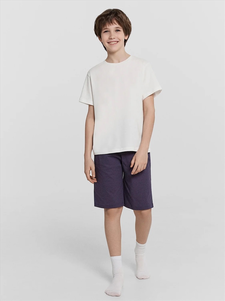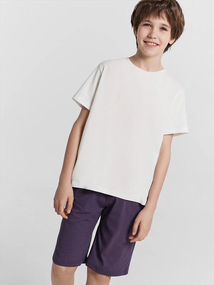 Домашние шорты для мальчиков — это идеальное сочетание удобства и практичности. Длина ниже колена обеспечивает комфорт и защиту, а свободный силуэт дарит легкость движений, что особенно важно для активного отдыха или игр. Высокая посадка на талии подчеркивает удобство, обеспечивая надежную фиксацию без ощущения давления. Боковые карманы добавляют функциональности, позволяя хранить небольшие вещи под рукой, а эластичная талия обеспечивает идеальную посадку и комфорт в течение всего дня. Низ шорт обработан в подгибку, что подчёркивает аккуратность и долговечность изделия. Материал из хлопковой кулирки дарит мягкость и гипоаллергенные свойства, создавая приятные ощущения на коже и отличную воздухопроницаемость. Эти шорты — отличный выбор для дома, отдыха или сна, который сочетает стиль, качество и комфорт. Рекомендуем!