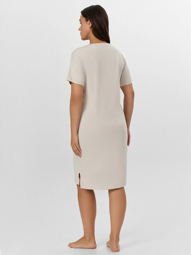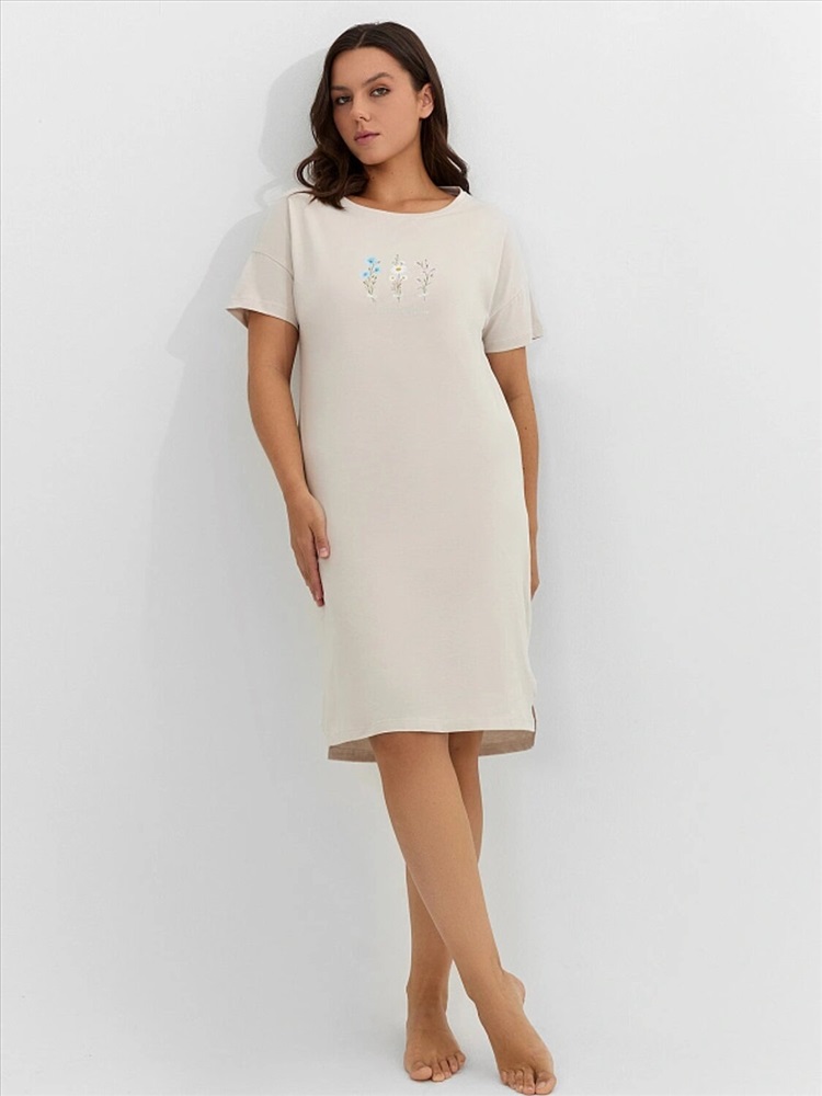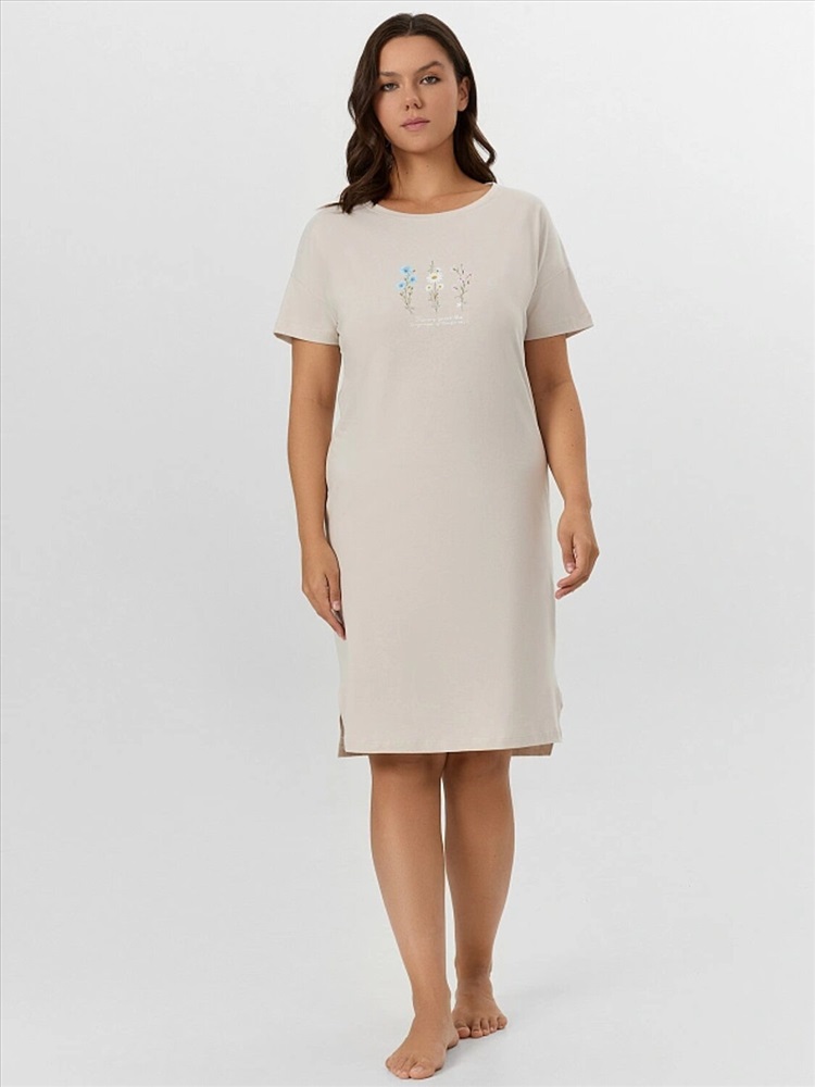 Ночная сорочка из натурального хлопкового материала — это идеальное сочетание комфорта, практичности и привлекательного дизайна. Хлопок обладает отличной воздухопроницаемостью, мягкостью и гипоаллергенными свойствами, благодаря чему сорочка подходит даже для самой чувствительной кожи. Свободный силуэт не ограничивает движения, обеспечивая максимальное удобство во время сна и отдыха. Длина до колена делает модель универсальной — она одинаково хорошо подходит как для ночного гардероба, так и для домашнего использования. Короткие рукава и круглый вырез горловины придают образу лаконичность и нежность, а боковые разрезы добавляют легкости и визуальной динамики. Сорочка выглядит аккуратно и женственно, создавая ощущение уюта и расслабленности. Это отличный выбор для тех, кто ценит натуральные материалы, комфорт и стиль в домашней одежде.