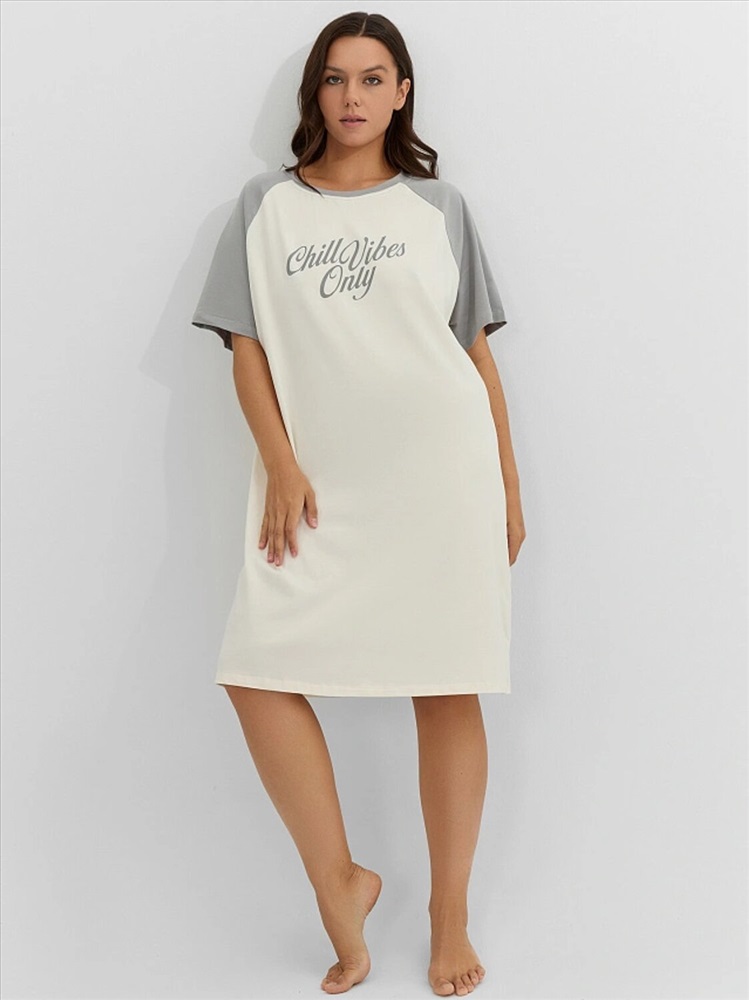 Надпись «Только расслабление» отражает философию модели — она создана для полного отдыха и восстановления. Хлопок обеспечивает воздухообмен и мягкость, даря коже ощущение нежности. Сорочка подходит для сна, утреннего кофе или спокойного отдыха дома — ее можно сочетать с пижамными брюками или носить как самостоятельное платье.