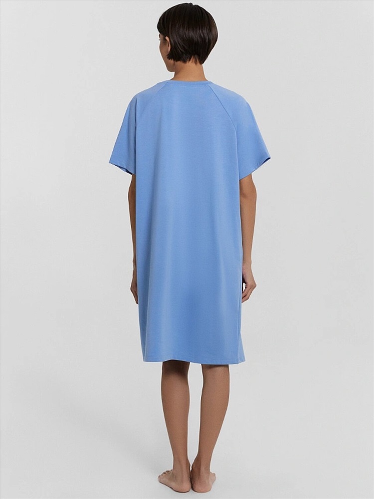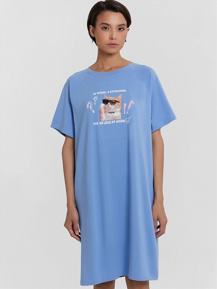 Эта женская сорочка прямого силуэта — удобный и универсальный элемент гардероба, идеально подходящий для повседневной носки и комфортного отдыха. Круглая горловина добавляет лаконичности в дизайн, а короткие рукава обеспечивают свободу движений и удобство. Нижний срез сорочки и рукавов обработан швом вподгибку, что придает изделию аккуратность и долговечность. Выполненная из смесового эластичного хлопка, модель обладает мягкостью, воздухопроницаемостью и эластичностью, обеспечивая комфорт в течение всего дня. Практичный и стильный вариант, который можно легко сочетать с другими элементами домашнего гардероба!
