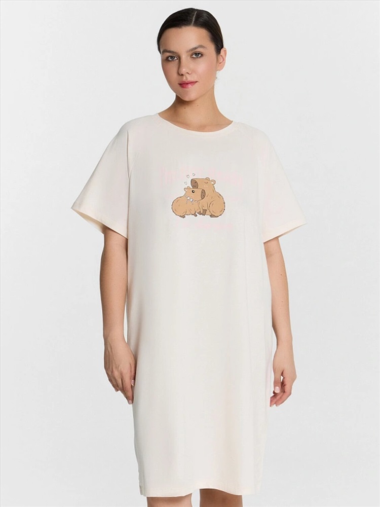 Женская сорочка — комфортный и универсальный вариант для повседневного гардероба. Прямой силуэт обеспечивает свободную посадку, позволяя чувствовать себя уверенно и удобно в течение дня. Круглая горловина добавляет классический акцент, а короткие рукава реглан делают модель еще более комфортной, обеспечивая свободу движений. Нижний срез сорочки и рукавов обработан швом вподгибку, что придает аккуратность и увеличивает долговечность изделия. Материал — хлопковая кулирка — мягкий, приятный на ощупь и отлично пропускает воздух, создавая ощущение легкости и комфорта при носке. Простая, стильная и удобная — прекрасный выбор для тех, кто ценит качество и комфорт в одежде!