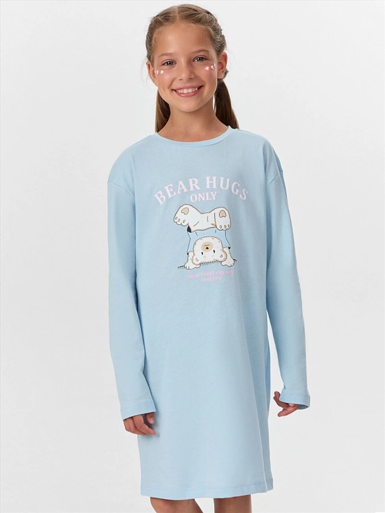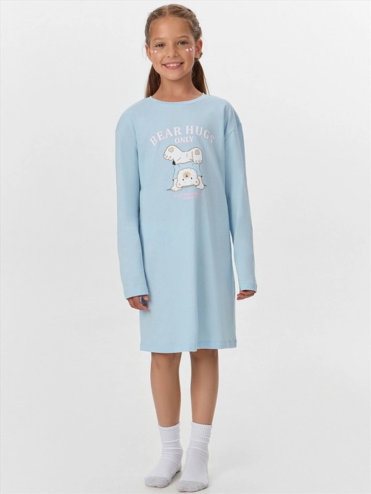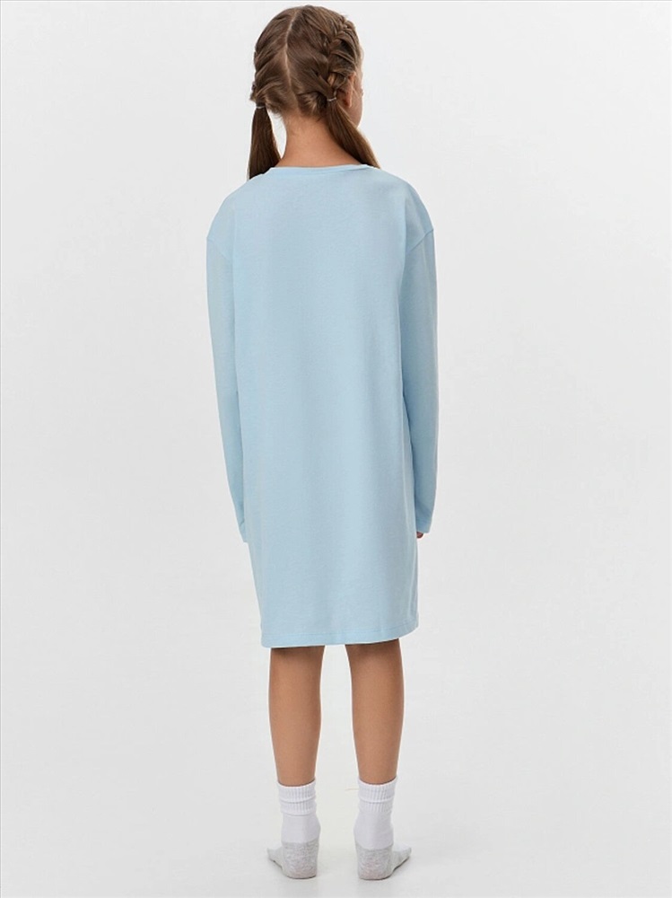 Эта сорочка для девочек — идеальный выбор для домашнего уюта и спокойного сна. Модель прямого свободного силуэта обеспечивает максимальный комфорт, не стесняя движений и позволяя ребенку чувствовать себя легко и свободно. Выполненная из мягкой хлопковой кулирки, сорочка приятна к телу, хорошо пропускает воздух и подходит даже для чувствительной кожи. Круглая горловина аккуратно обработана обтачкой из основного материала, что делает изделие эстетичным и долговечным. Спущенная линия плеча и длинные рукава добавляют расслабленности и удобства, а низ изделия и рукавов аккуратно застрочен швом вподгибку — для чистого и аккуратного вида. Такая сорочка прекрасно подойдет для сна, отдыха дома или уютных вечеров с книгой. Натуральный материал, продуманный крой и нежный дизайн — все, что нужно для ежедневного комфорта.