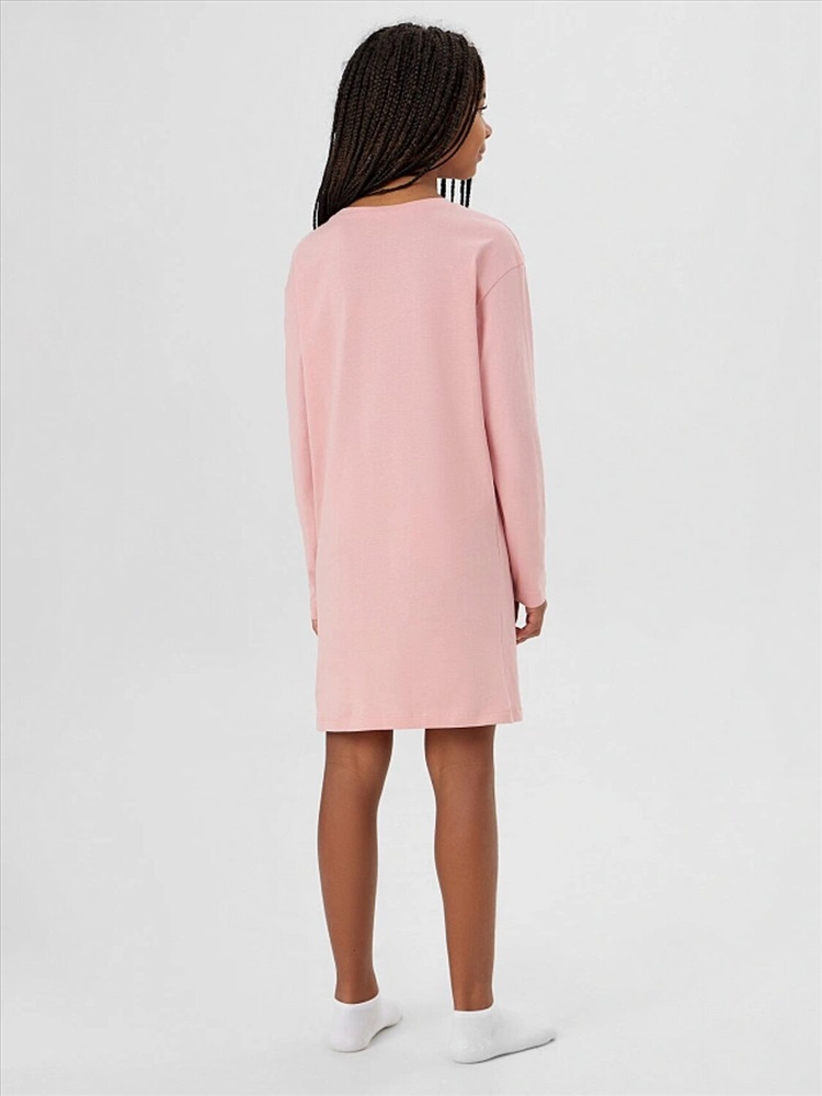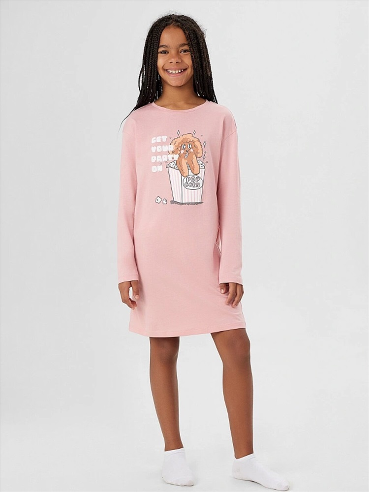 Эта сорочка для девочек — идеальный выбор для домашнего уюта и спокойного сна. Модель прямого свободного силуэта обеспечивает максимальный комфорт, не стесняя движений и позволяя ребенку чувствовать себя легко и свободно. Выполненная из мягкой хлопковой кулирки, сорочка приятна к телу, хорошо пропускает воздух и подходит даже для чувствительной кожи. Круглая горловина аккуратно обработана обтачкой из основного материала, что делает изделие эстетичным и долговечным. Спущенная линия плеча и длинные рукава добавляют расслабленности и удобства, а низ изделия и рукавов аккуратно застрочен швом вподгибку — для чистого и аккуратного вида. Такая сорочка прекрасно подойдет для сна, отдыха дома или уютных вечеров с книгой. Натуральный материал, продуманный крой и нежный дизайн — все, что нужно для ежедневного комфорта.