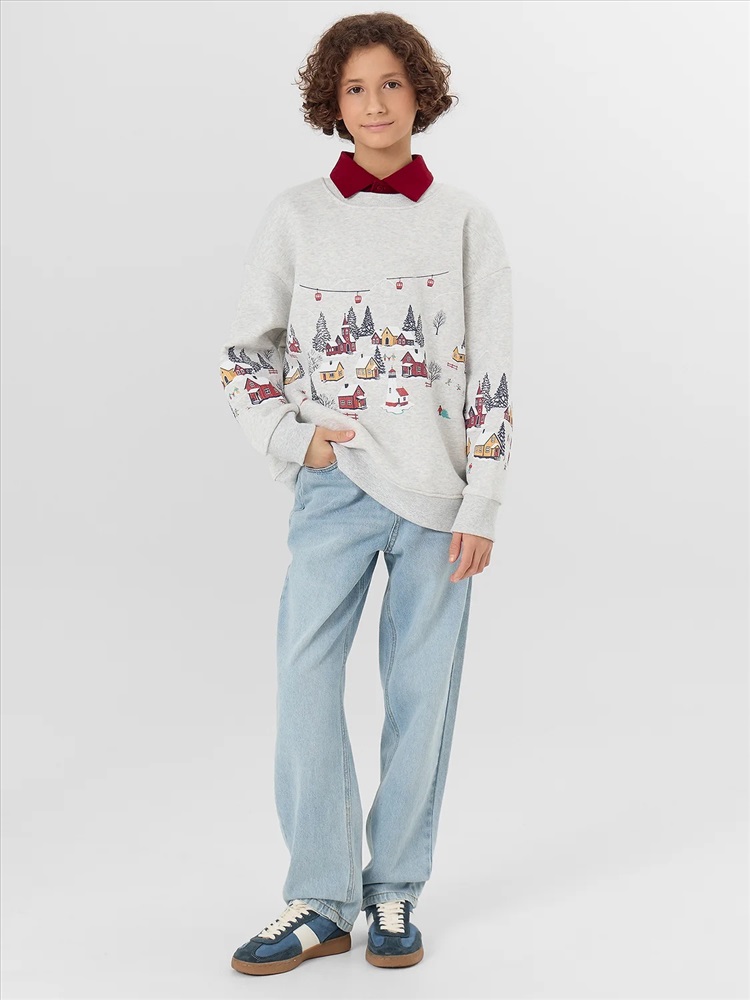 Яркий тематический принт и жизнерадостная надпись поднимут настроение в преддверии праздников. Состав с добавлением полиэстера делает свитшот практичным и износостойким для активных зимних игр. Этот свитшот станет любимой вещью для зимних прогулок, утренников и домашних праздников, даря мальчику ощущение волшебства и уюта на протяжении всего праздничного сезона.
