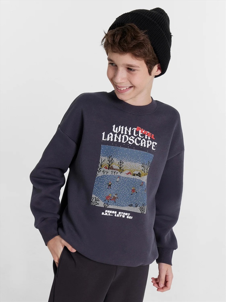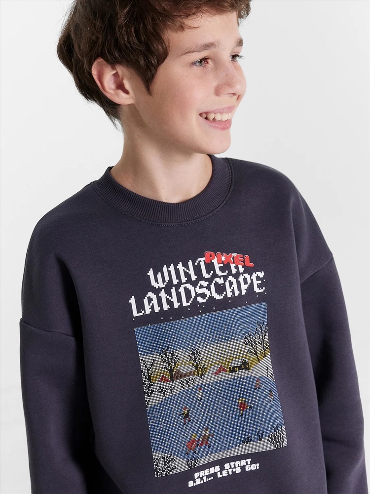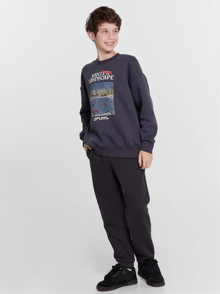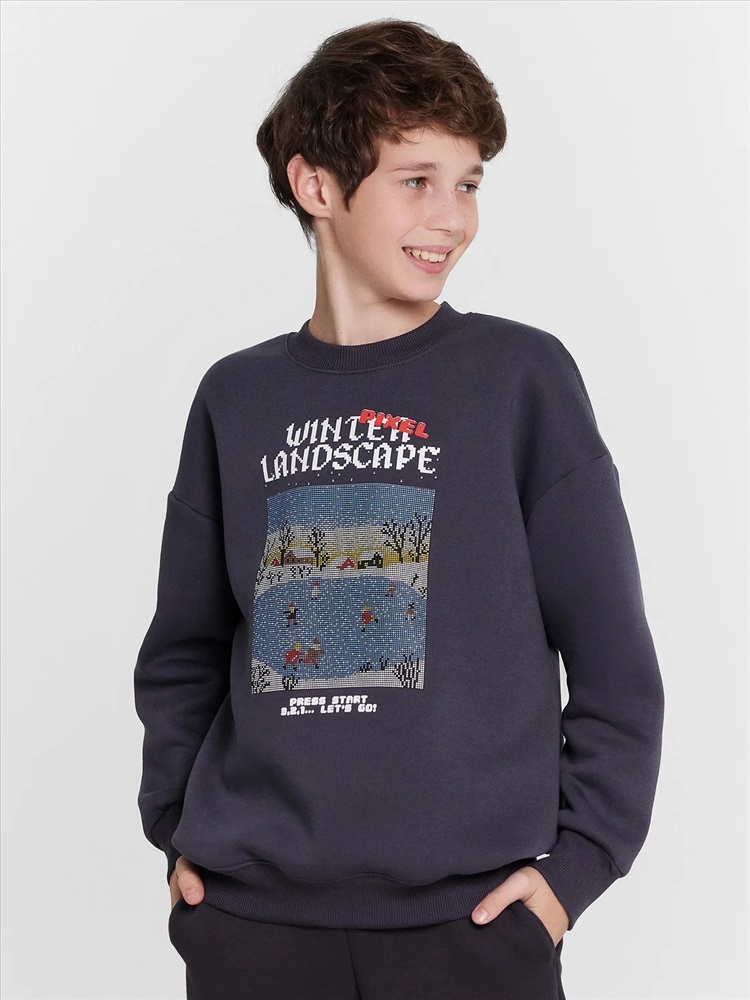 Джемпер изготовлен из футера. Джемпер свободного силуэта.