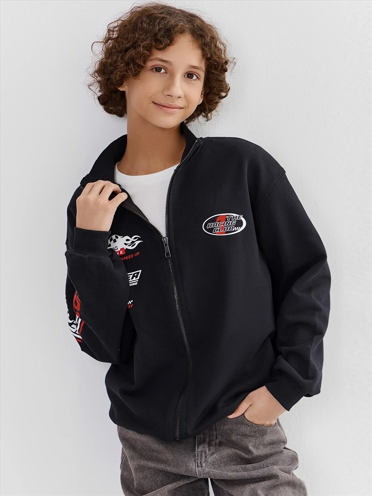 Представляем вашему вниманию стильную толстовку для мальчиков. Этот практичный и комфортный элемент гардероба станет незаменимым спутником в любое время года. Модель выполнена из футера без подчеса, со спущенным плечом. По низу рукавов - отрезные манжеты из рибаны. Отрезной пояс также выполнен из рибаны, что обеспечивает плотное и комфортное прилегание к фигуре. Застежка-молния позволяет легко надевать и снимать толстовку. В составе изделия - высококачественный хлопок. Универсальный дизайн позволяет сочетать ее с различными элементами гардероба, создавая стильные повседневные образы. Толстовка станет отличным вариантом как для занятий спортом, так и для прогулок с друзьями. Рекомендуем!