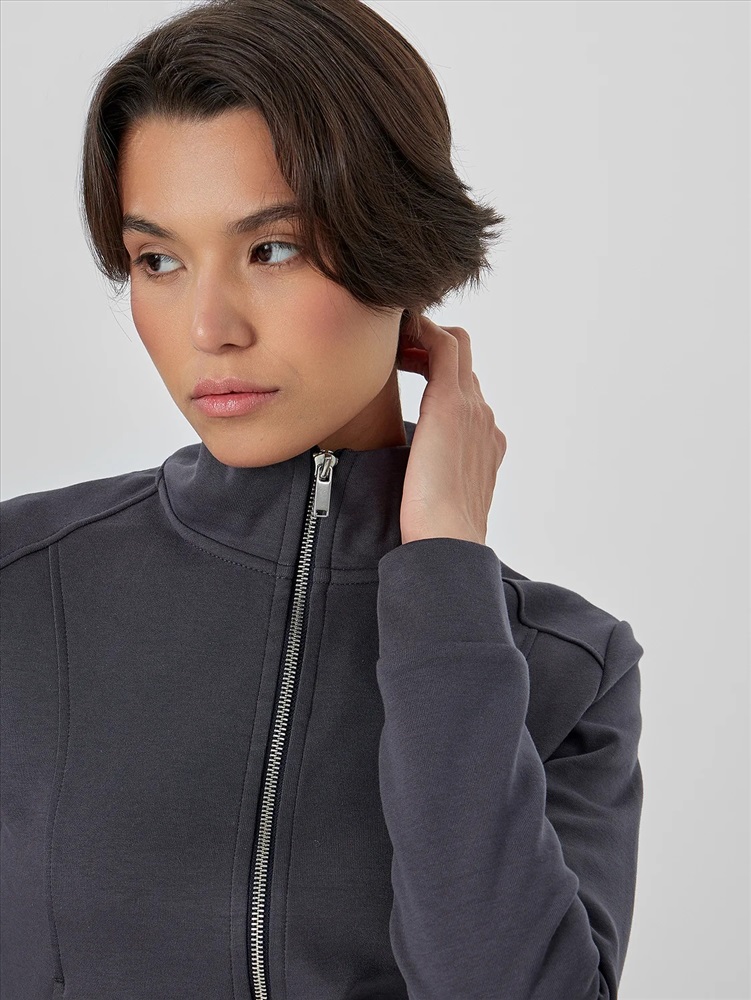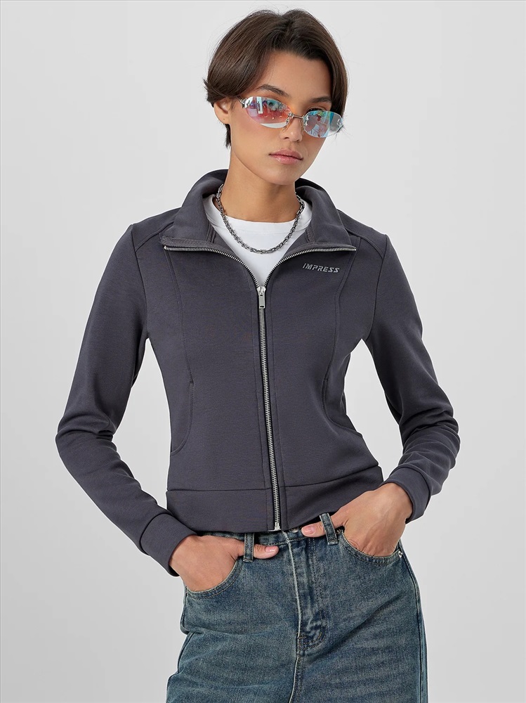 Женская толстовка прилегающего силуэта в насыщенном металлическом сером цвете с мотивирующей надписью «Впечатляй» создана для тех, кто ценит современный крой и внимание к деталям. Модель оснащена удобной застежкой-молнией по центру, которая позволяет легко регулировать степень открытости и создавать многослойные образы.