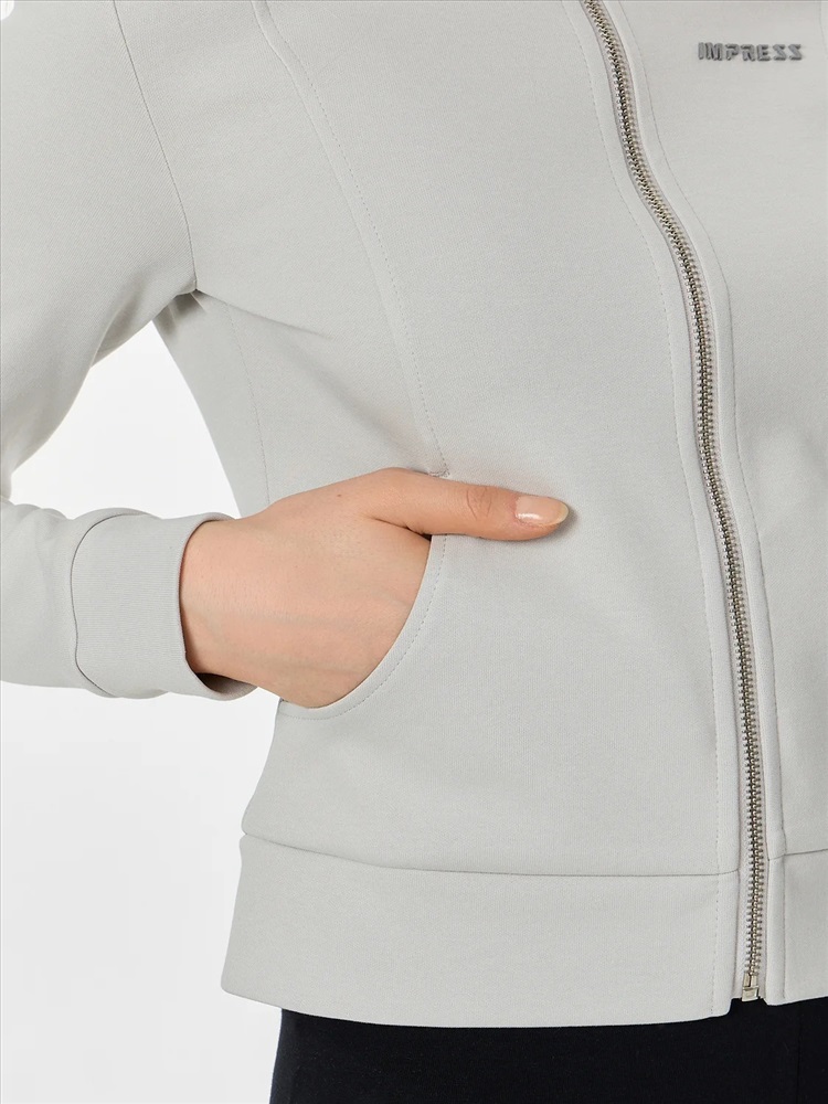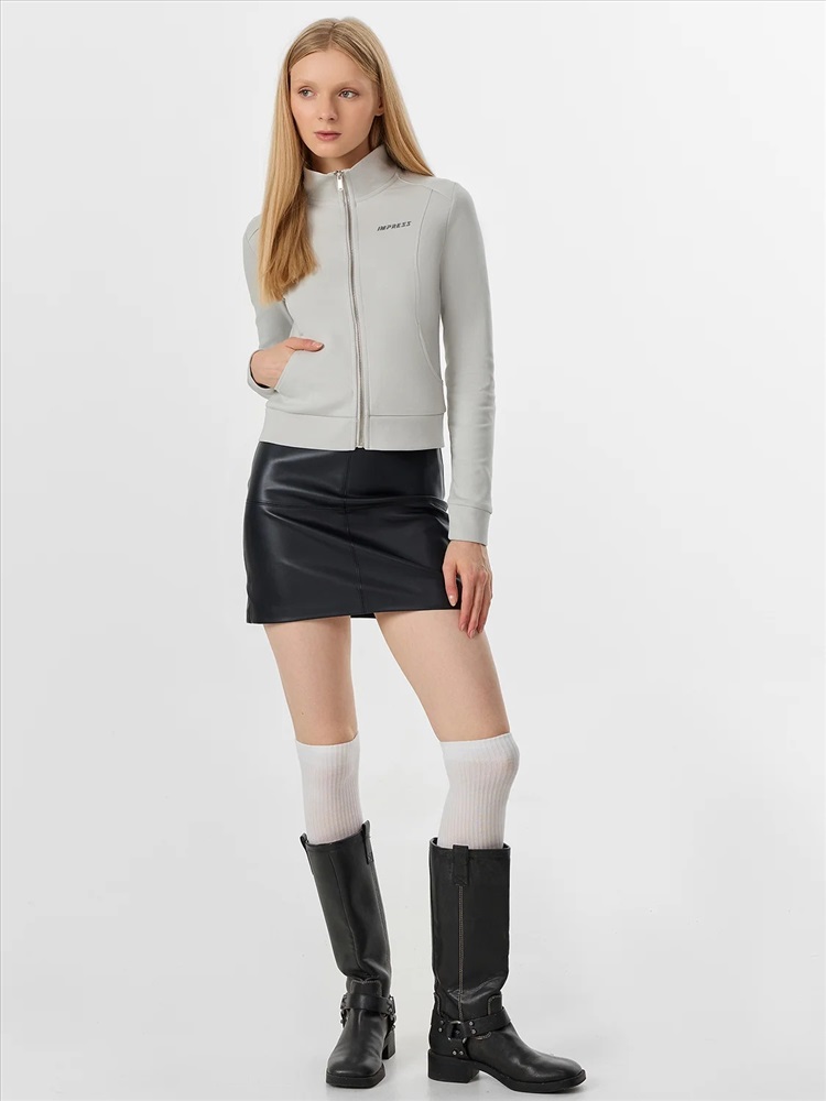 Женская толстовка прилегающего силуэта в насыщенном металлическом сером цвете с мотивирующей надписью «Впечатляй» создана для тех, кто ценит современный крой и внимание к деталям. Модель оснащена удобной застежкой-молнией по центру, которая позволяет легко регулировать степень открытости и создавать многослойные образы.