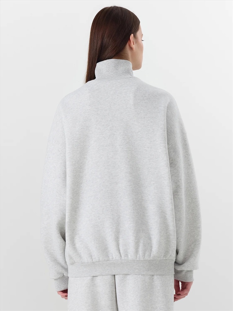 Толстовка свободного силуэта (оверсайз), с воротником- стойкой из рибаны. Горловина округлой формы. Плечо спущено, рукав втачной длинный. Боковые швы перенесены вперед, в них находятся карманы с подкладкой из кулирки. По центру изделия застежка из металлической молнии (StandartMetal №5). По низу рукава отрезная манжета из рибаны. Пояс отрезной из рибаны. Навесной ярлык БАЗА ПРЕМИУМ по заданию