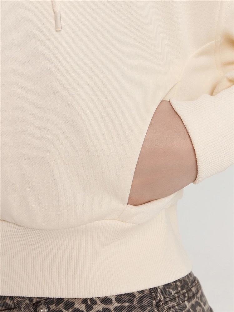 Эта укороченная женская толстовка станет стильным элементом вашего гардероба. Модель свободного силуэта с капюшоном на кулиске создаст современный и непринуждённый образ. Центральная застежка на молнию обеспечивает практичность и удобство, а длинные рукава с манжетами из рибаны добавляют уют. Спущенное плечо и боковые карманы добавляют функциональности и стиля. Изделие выполнено из футера без подчеса, что обеспечивает мягкость и комфорт при носке. Эта толстовка легко сочетается с различными элементами гардероба, создавая стильные и удобные образы на каждый день.