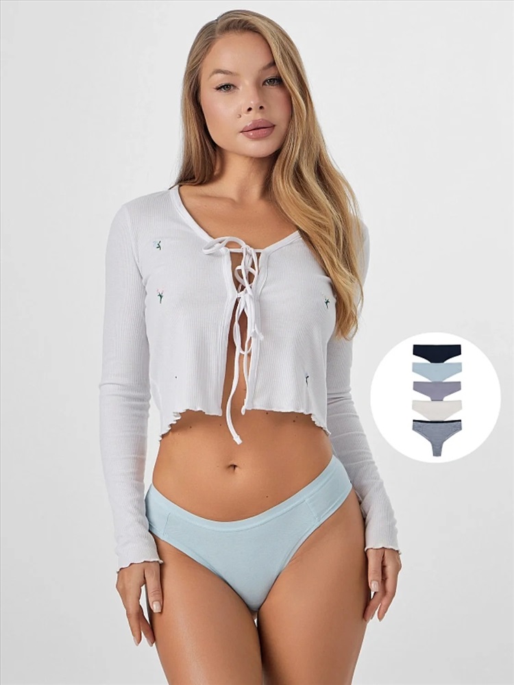 Мультипак (5 штук) хлопковых трусиков-бразилиана из натурального, гипоаллергенного, дышащего полотна. Линия талии занижена. На верхнем срезе – тонкая эластичная тесьма, по ножкам – шов вподгибку. Почти не заметны под одеждой!