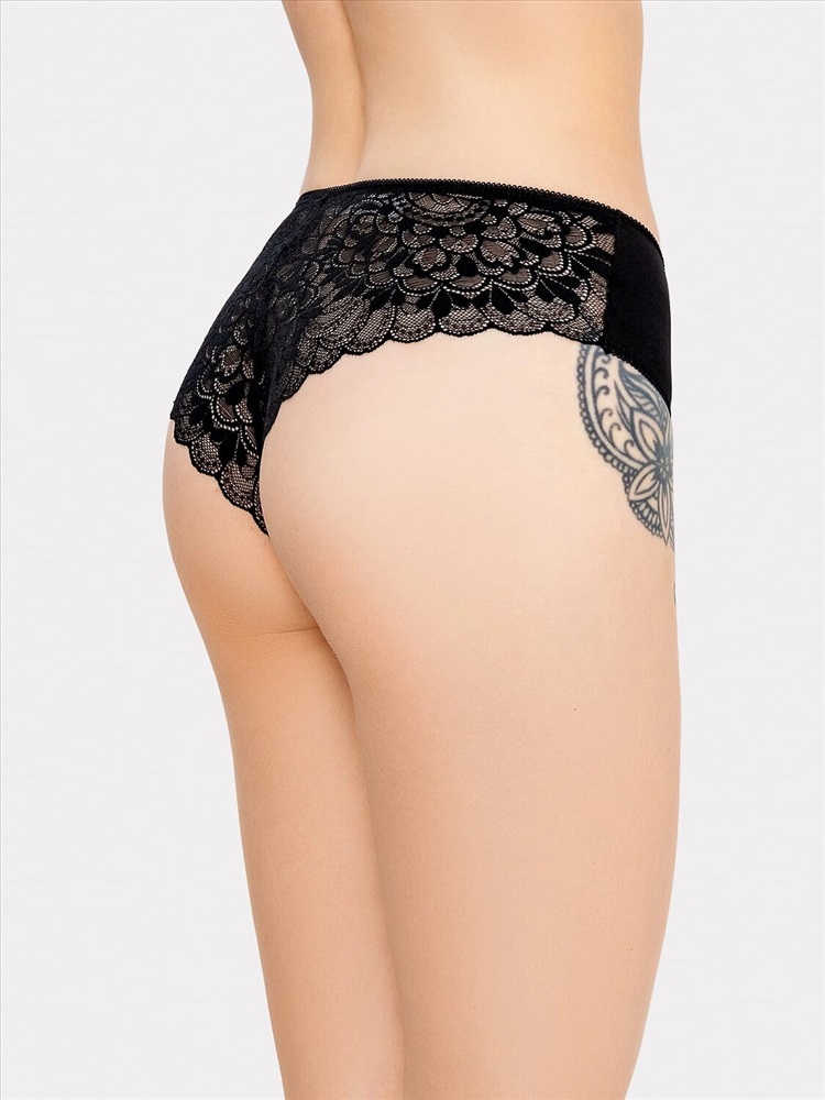 Качественные и комфортные трусики-шорты из трикотажного полотна. Линия талии классическая. На верхнем срезе трусиков и по ножкам – тонкая эластичная тесьма. Задняя деталь выполнена из элегантного полупрозрачного кружева. Комфортный вариант на каждый день!