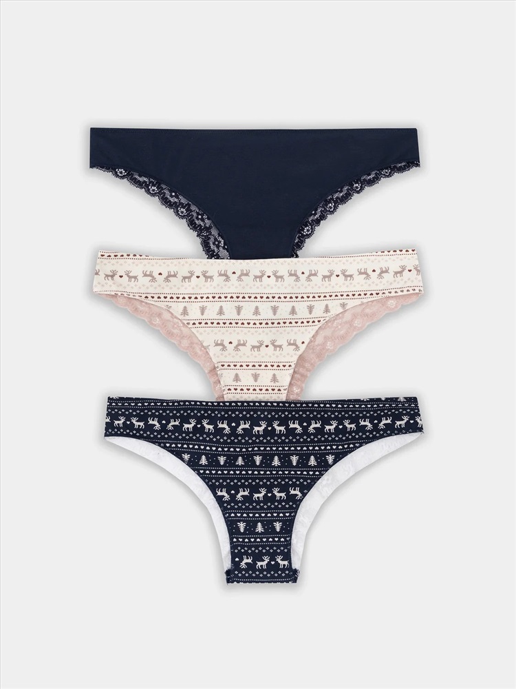 Стильный набор женских трусиков бразилиана (3 шт.) разных цветов из высококачественного хлопка с кружевными деталями. Невероятно удобные, благодаря своей невысокой посадке, они пользуются заслуженной любовью покупательниц. Изготовлены из натурального материала, дышащего, мягкого, гипоаллергенного - идеального для повседневной носки. Продуманная анатомичная конструкция, плоские швы и деликатные резиночки делают эту модель подходящей для занятий спортом, можно использовать её как спортивное бельё, а также, оно идеально для ежедневной носки. Пригодятся трусы бразилиана и будущим мамам: талия трусиков удобно помещается под растущим животиком и абсолютно не давит. Отлично тянутся, хорошо пропускают воздух и не создают парникового эффекта. Размерный ряд широкий, красивые базовые цвета и модели с принтами - никого не оставят равнодушными. Милый дизайн радует глаз, а дополнить такие трусики легко шикарным верхом из линейки нижнего женского белья. Порадуйте себя и близких красивым женским бельем на праздники и просто без повода!