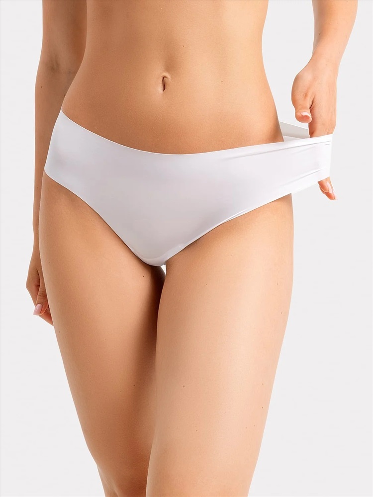 Бесшовные хлопковые слип-бикини с необработанными ("сырыми") краями. Посадка по талии – средняя. Трусики незаметны даже под облегающей одеждой. Максимальный комфорт!