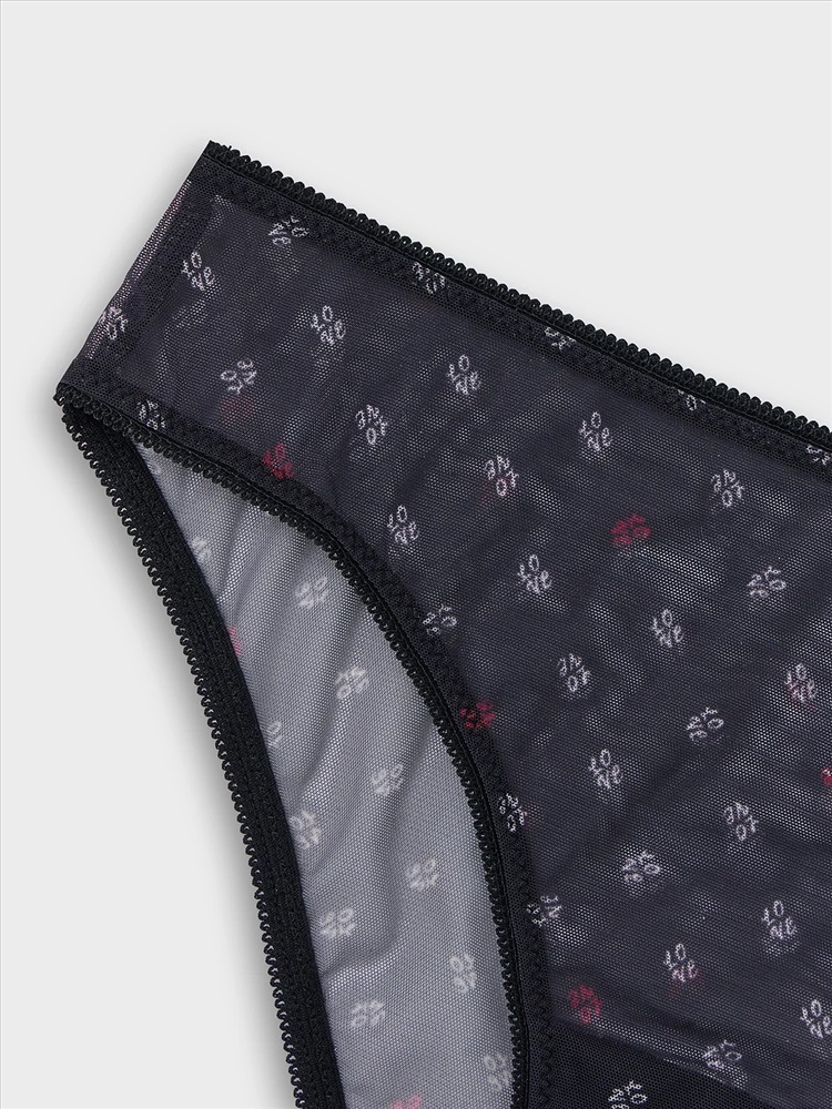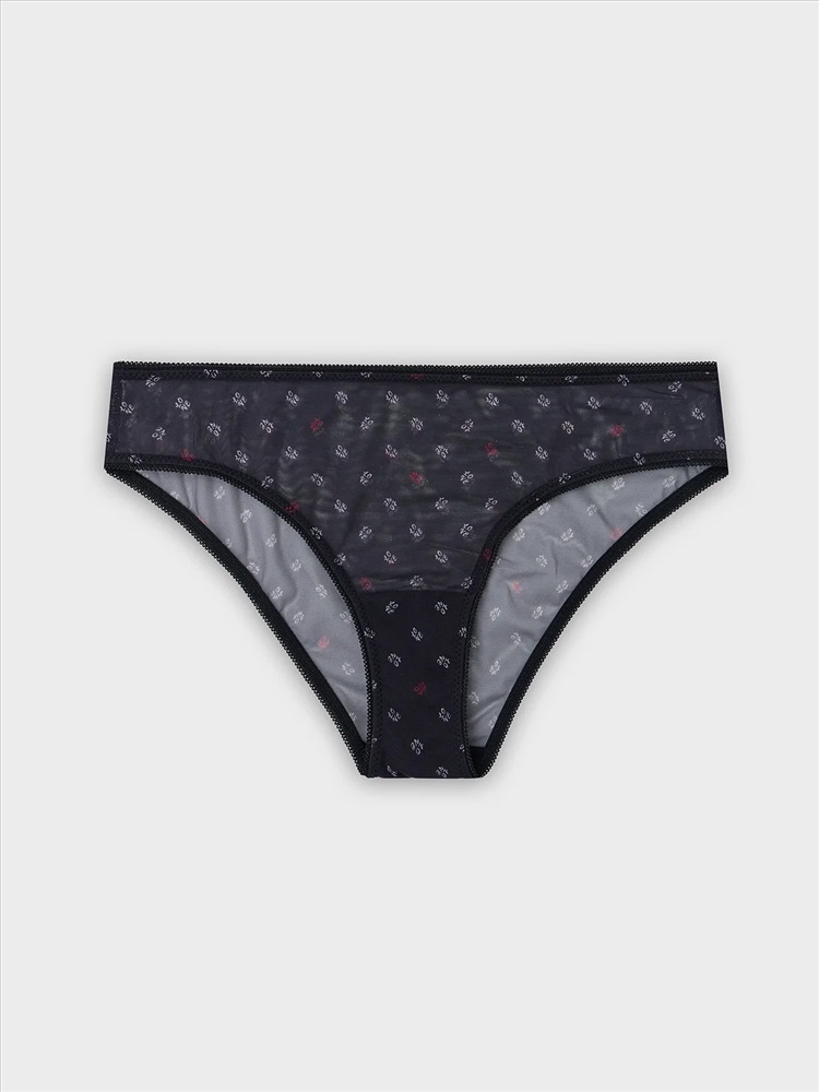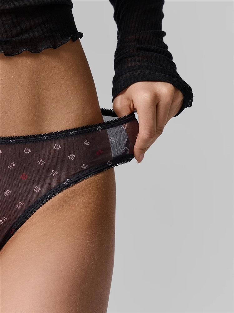 Слипы-бикини с принтом из полупрозрачной сетки создают дерзкий и притягательный образ. Модель с классической линией талии обеспечивает комфортную посадку, мягко подчеркивая силуэт.