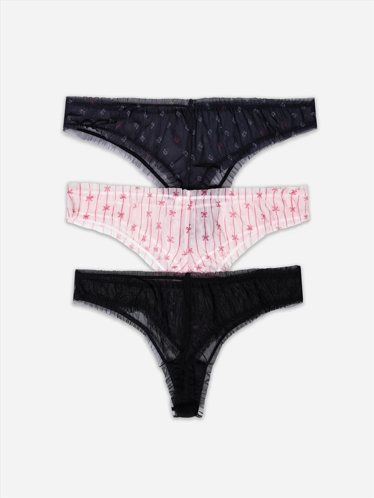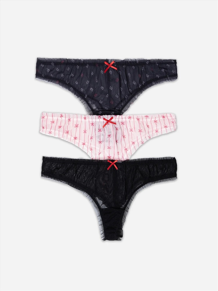 Восхитительные женские трусы модели бразилиана из эластичного сетчатого материала созданы для современных женщин, ценящих и комфорт, и изысканность. Набор из трех пар трусов бразилиана сочетает в себе практичность и элегантный дизайн, что делает их идеальным выбором для любого случая.