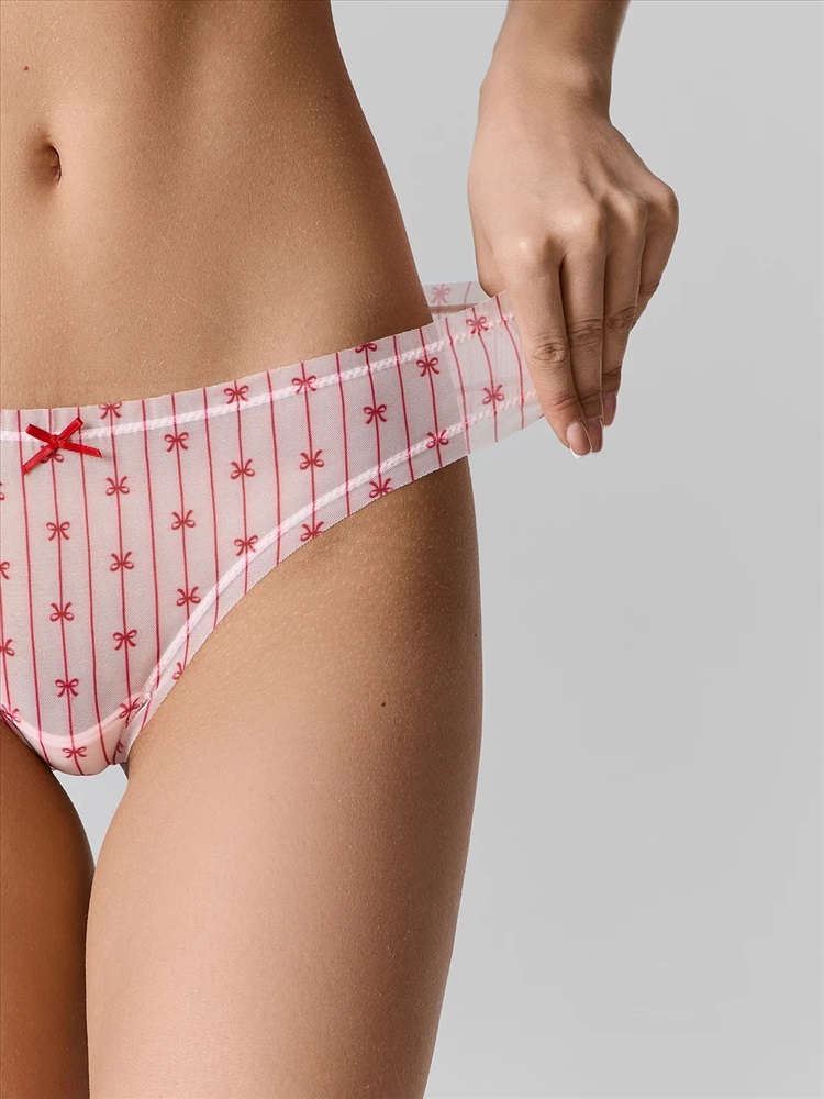 Женские трусы бразилиана средней посадки с очаровательной рюшей по ножкам придают образу особую женственность. Ультратонкий материал обеспечивает полный комфорт, оставаясь практически незаметным даже под самой обтягивающей одеждой.
