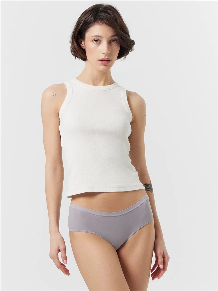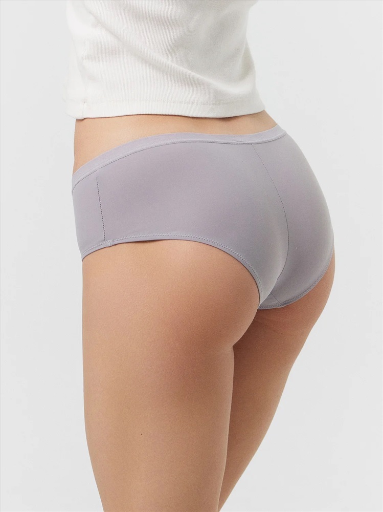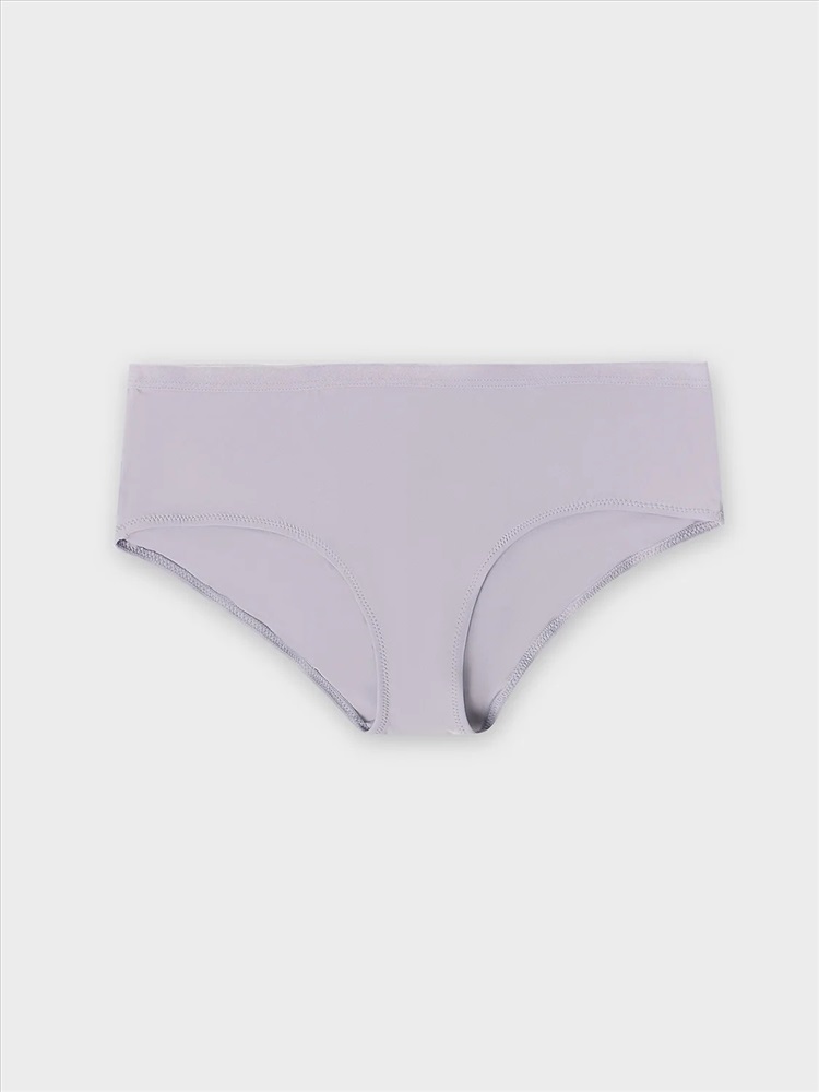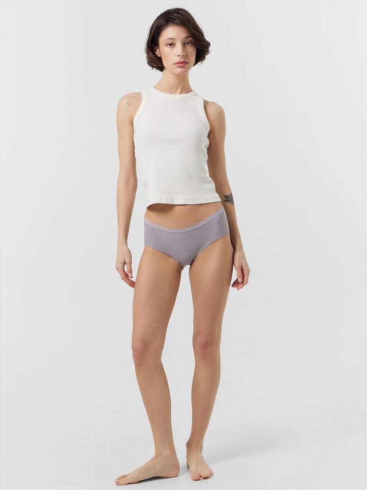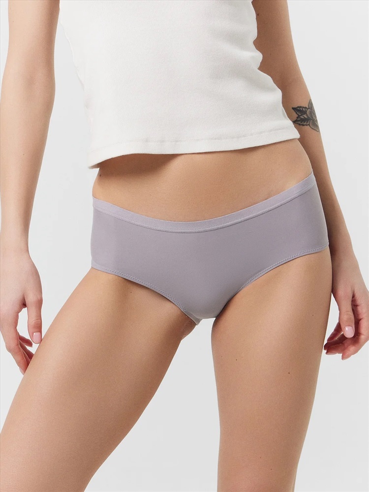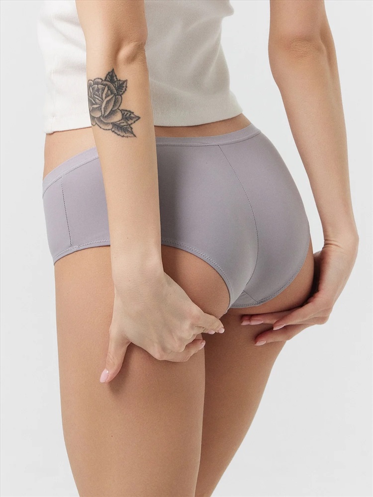 Трусы женские, средняя линия талии, силуэт - шорты. Передняя и задние детали выполнены из трикотажного эластичного полотна. Подкладка ластовицы из хлопка, верхний срез отлетной. По верхнему срезу трусов жилка, нижние срезы обработаны в подгибку.