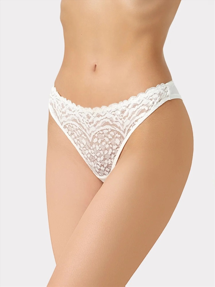 Трусы женские, высокая линия талии, силуэт - бразилиано. Передняя деталь выполнена из кружева. ластовица из кружева, подкладка из хлопка. Задние детали из р.2052. По верхнему срезу передней детали жилка 6мм. под кружевом. По верхнему срезу задней детали трусов тесьма с зубом 10мм. (рабочая зона 8мм.). Нижние срезы задних деталей обработаны в подгибку. нижние срезы передней детали и ластовицы обработаны жилкой