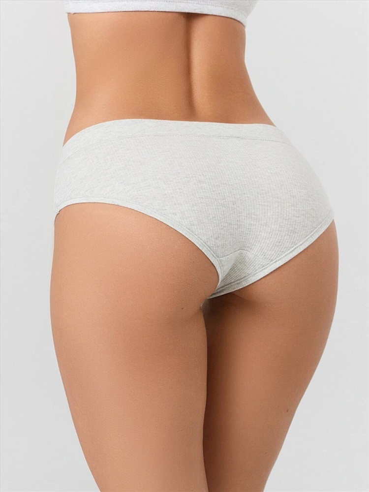 Трусы женские, средняя линия талии, силуэт - слипы. Передняя и задняя детали выполнены из рибаны. Верхний срез трусов обработан бейкой поперечной из рибаны, внутри жилка 6мм. Нижние срезы обработаны бейками поперечными из рибаны. Подкладка ластовицы из хлопка, отлетная по верхнему срезу.