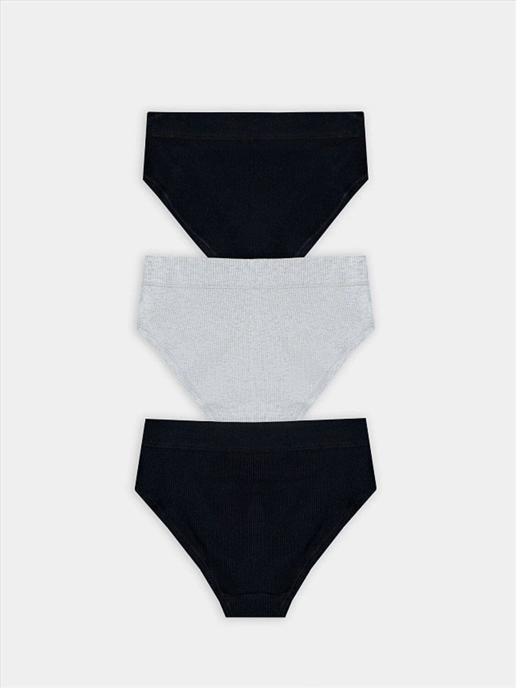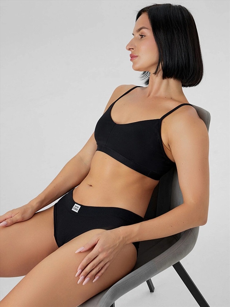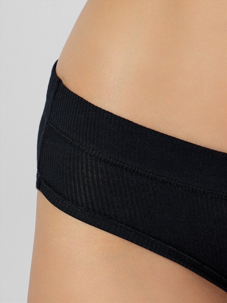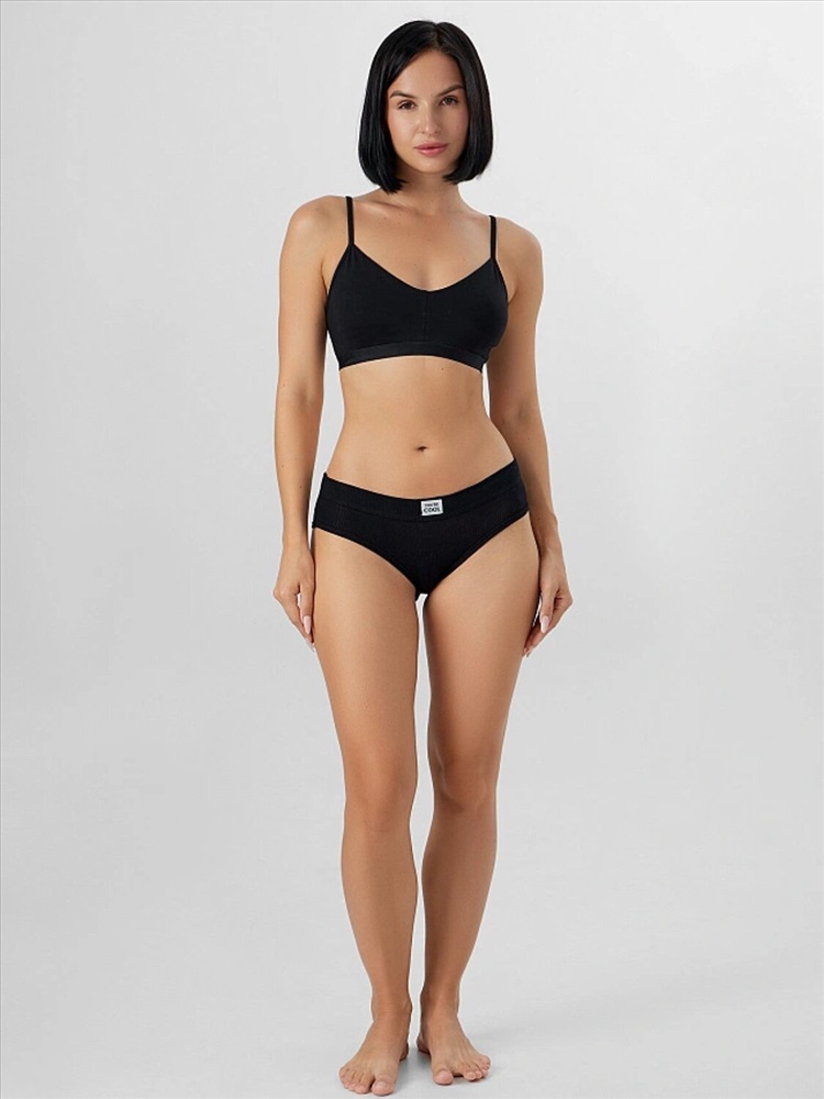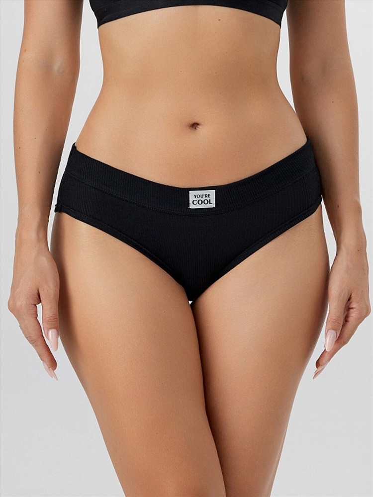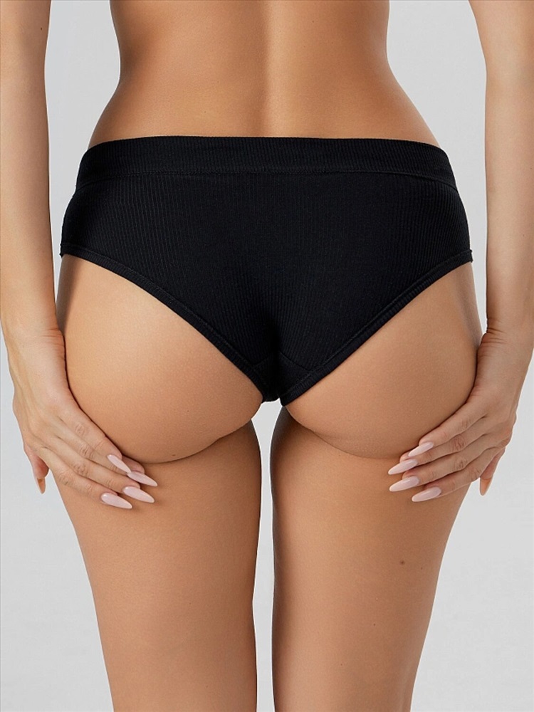 Трусы женские, средняя линия талии, силуэт - слипы. Передняя и задняя детали выполнены из рибаны. Верхний срез трусов обработан бейкой поперечной из рибаны, внутри жилка 6мм. Нижние срезы обработаны бейками поперечными из рибаны. Подкладка ластовицы из хлопка, отлетная по верхнему срезу.