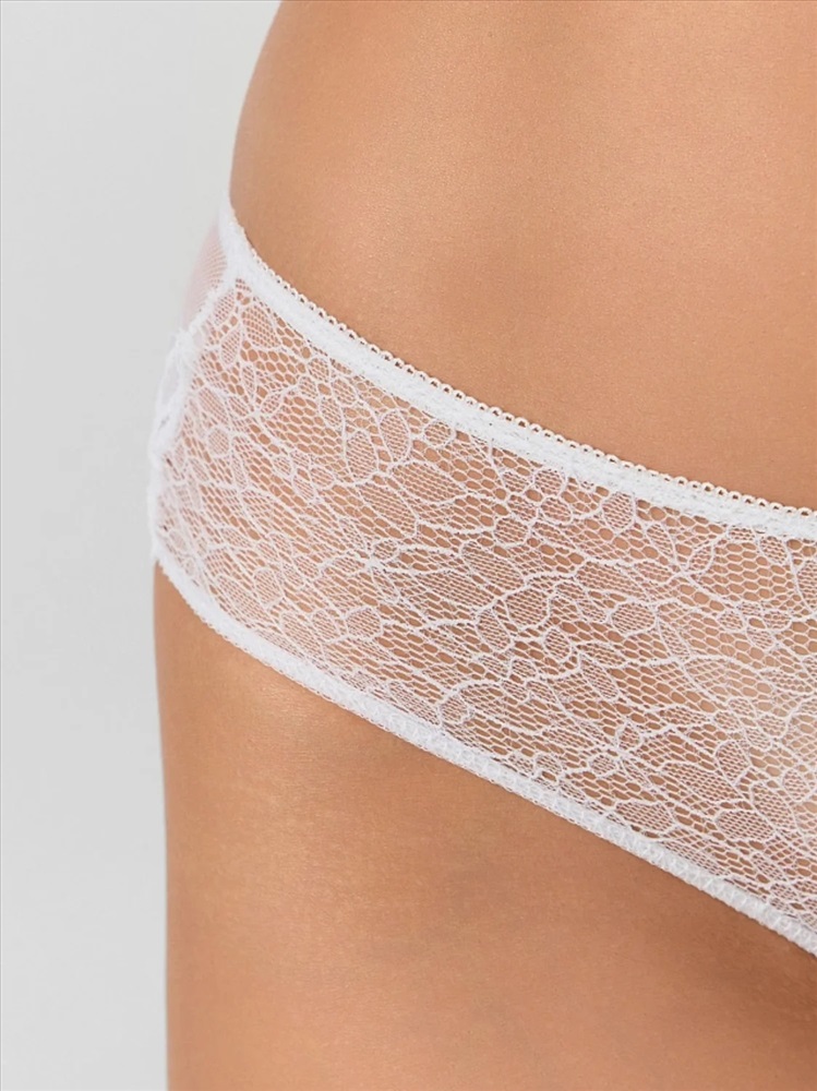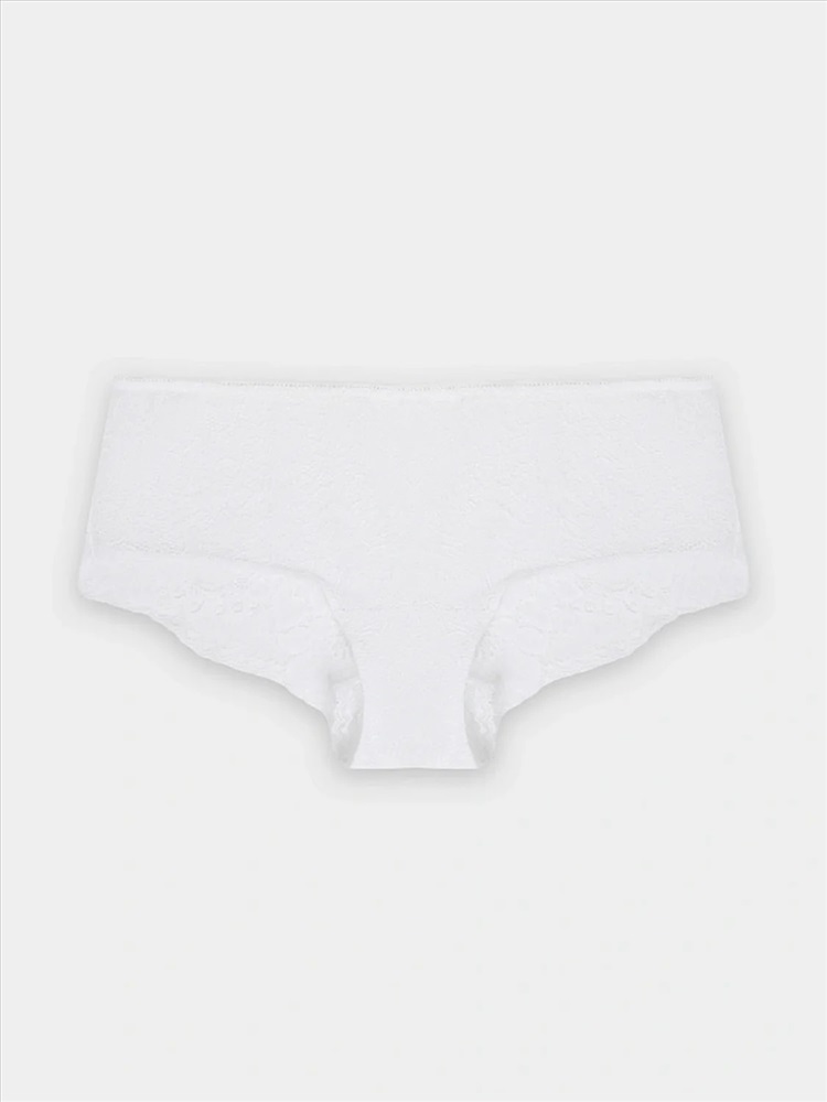 Трусы женские, средняя линия талии, шорты. Передняя деталь выполнена из кружевного полотна. Задние детали выполнены из кружева. Подкладка ластовицы из хлопка, отлетная по верхнему срезу. Верхний срез обработан тесьмой с зубом. Нижние срезы передней детали обработаны жилкой.