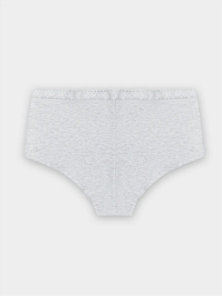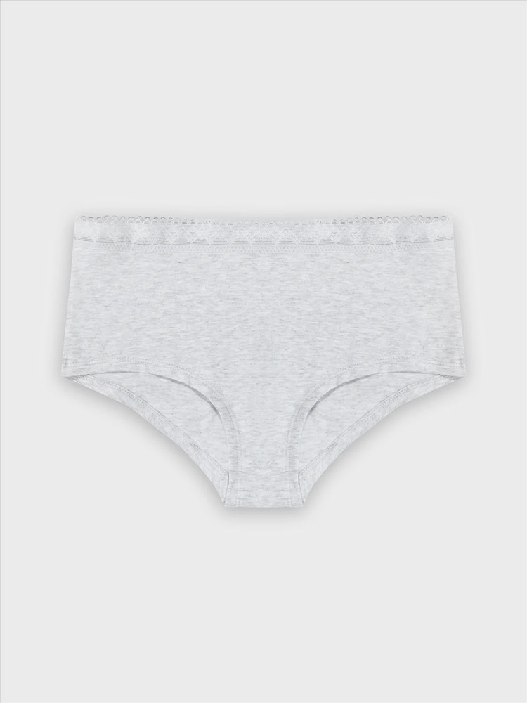 Трусы женские, средняя линия талии, силуэт-шорты. Передняя и задние детали выполнены из кулирки. Подкладка ластовицы выполнена из кулирки, отлетная по переднему срезу. Верхний срез трусов обработан декоративной тесьмой Девсель ТК0026566 (20мм.) с жилкой 4мм. с изнаночной стороны. Нижние срезы обработаны вподгибку.